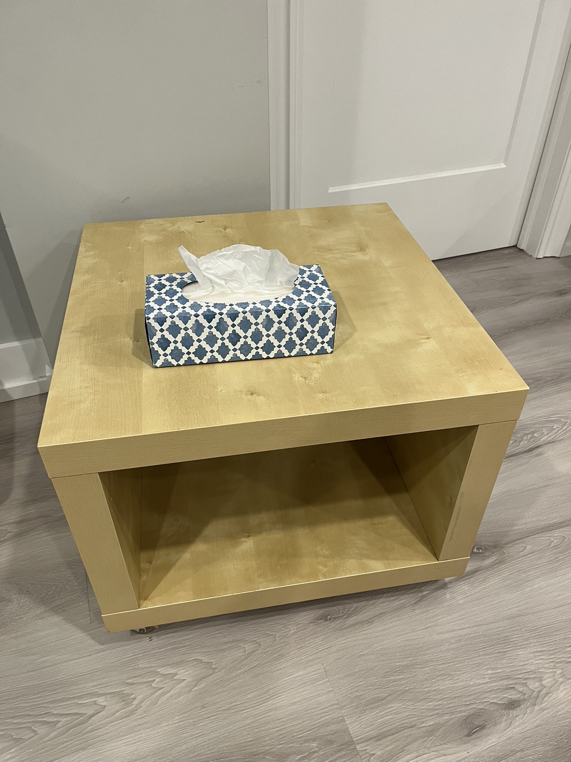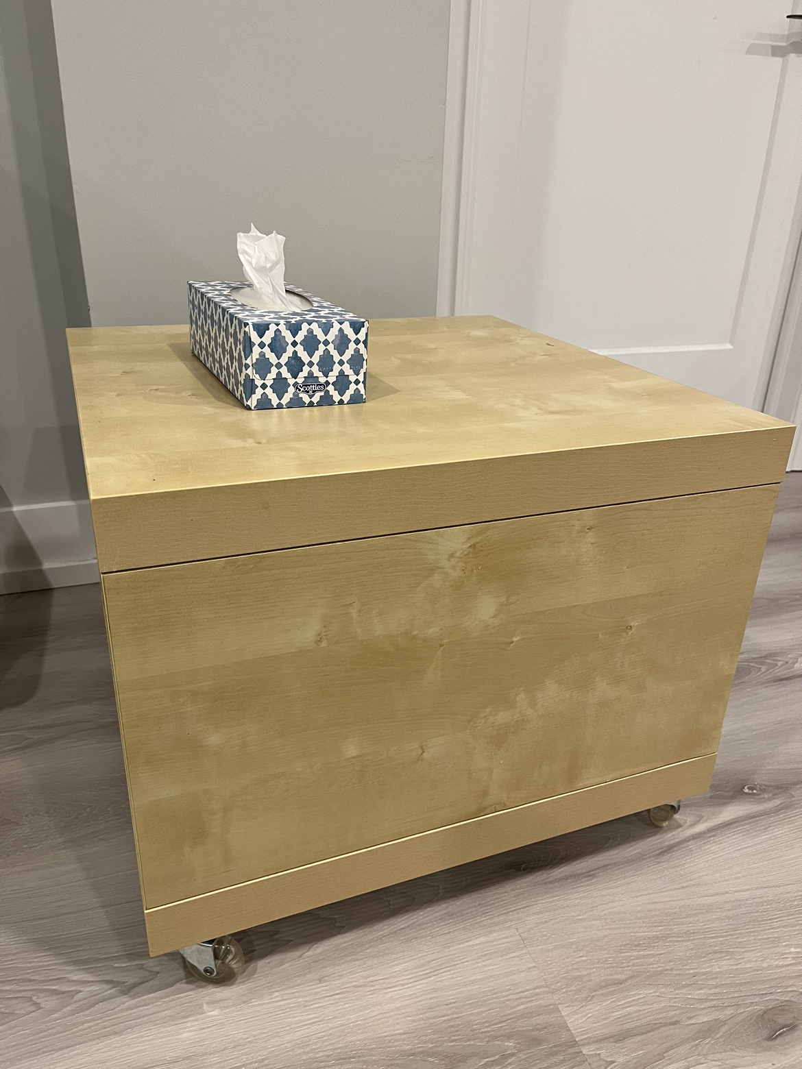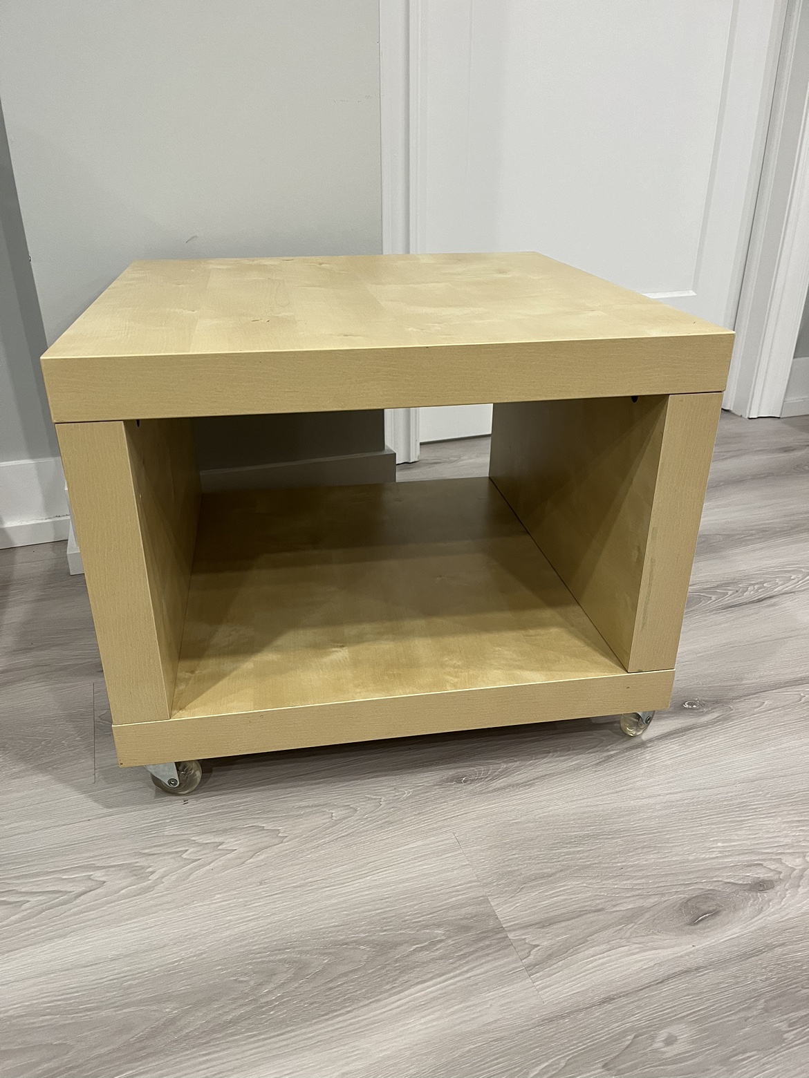 Smoke free pet free home Pick up only. Yonge & Steeles Item brought to driveway IKEA beige coffee table with wheels that can be removed Dimensions ~ 21.5 x 21.5 x 17.75 in inches (height is with wheels) Multi functional - coffee table, kids art table, plants storage in balcony, etc Some wear and tear noted in photos, hence the good price