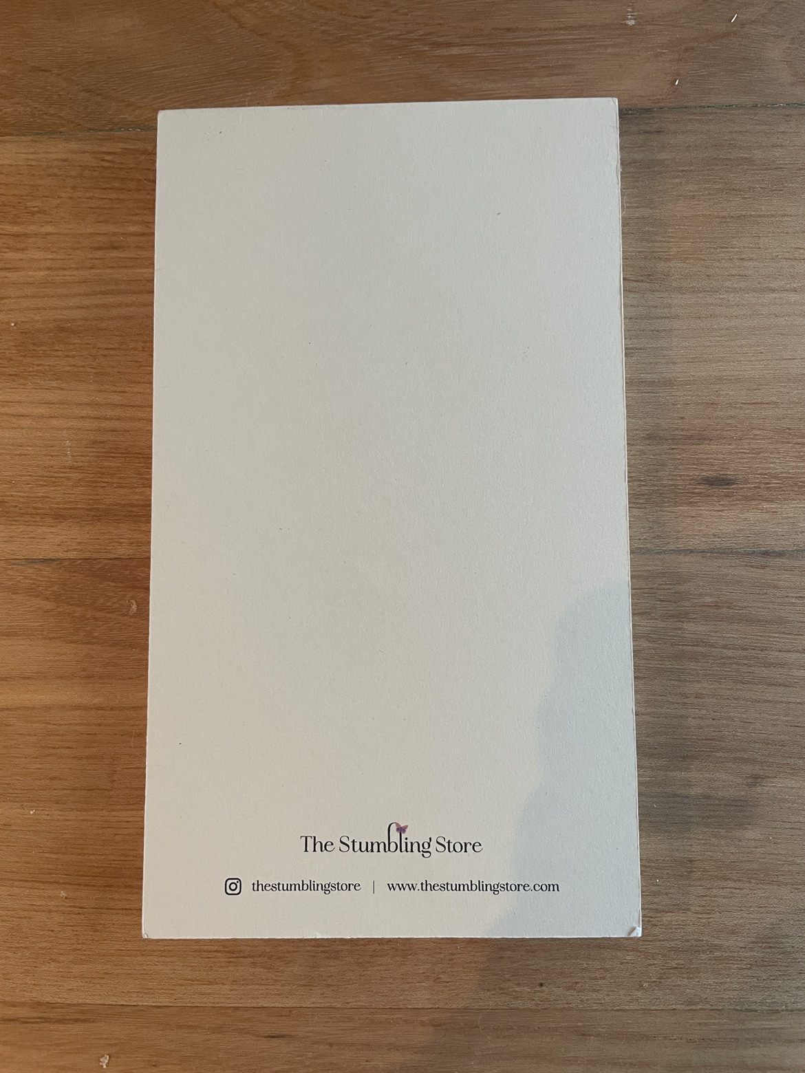 Cute little stationary pad. Perfect to write little love notes or to do lists in :) new and unused. Approx 10 cm by 18 cm.