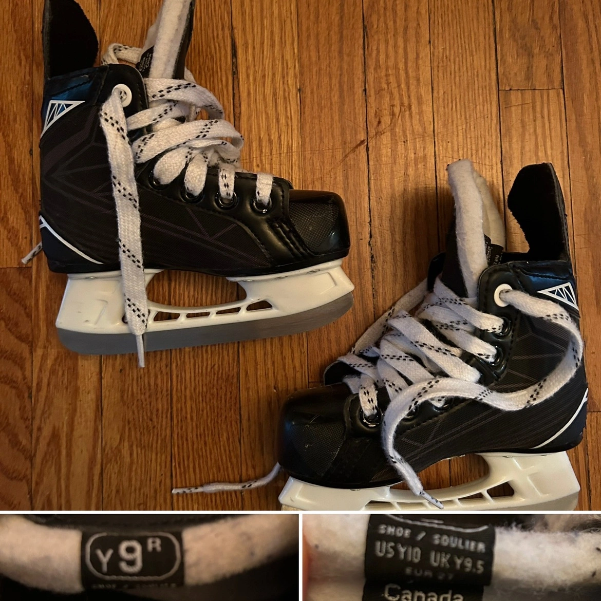 Hockey skates, EUC. Size 9Y (skates are not sized like shoes) OUTSIDE dimension is 7.5” toe to heel. Porch pick up Pape/Mortimer. Cross posted