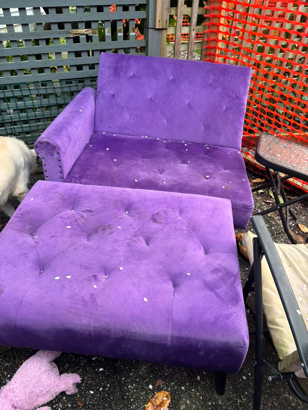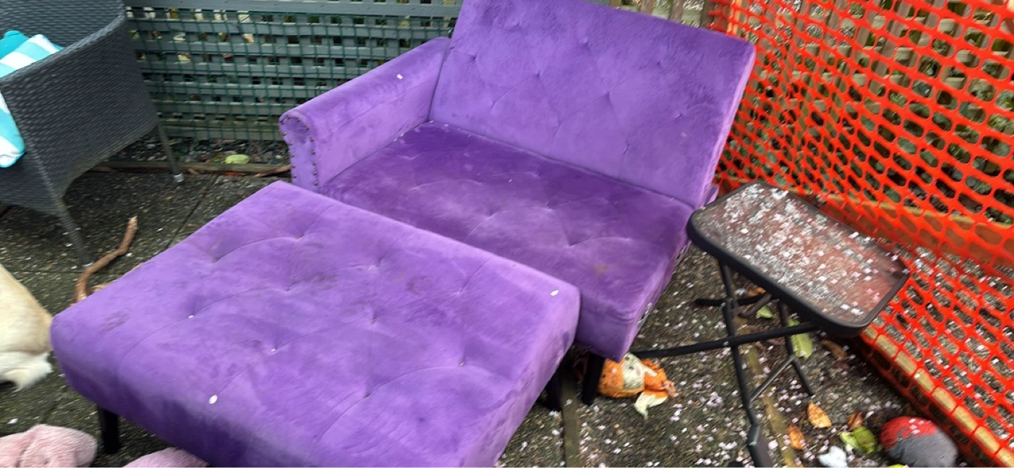Buy & SellPurple Tufted Accent Chair with OttomanPurple Tufted Accent Chair with Ottoman$50Purple velour accent chair with tufted detailing and matching ottoman. Studded trim along the armrest. This set offers a pop of colour for any room.ConditionGoodWHERE TO MEETCheck LocationView MapSELLERverifiedRachelFalse Creek701 review1 chats·1 favorites·30 viewsSEND CHAT TO SELLERHi Rachel! I’m interested in your listing.Hi Rachel! I’m interested in your listing.Get the Karrot app to chatSign In to chat