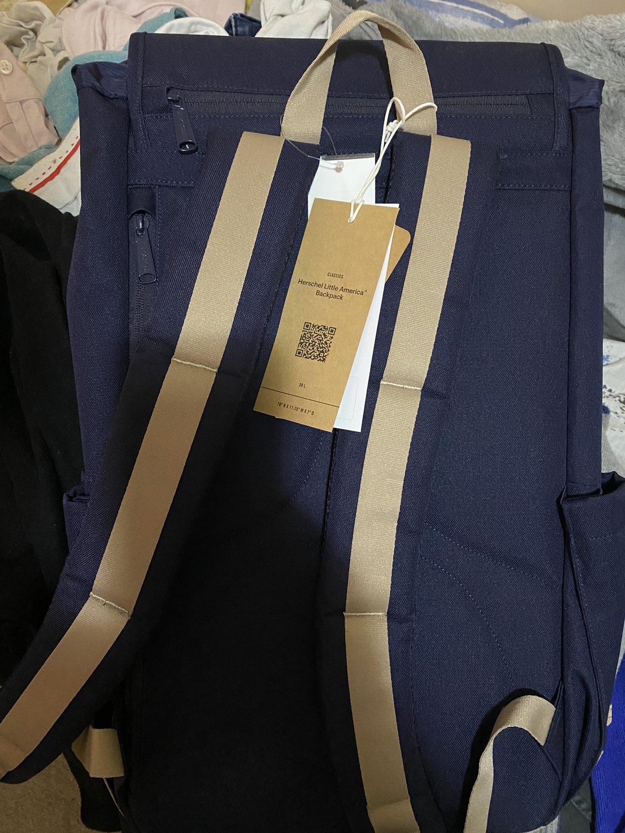 Brand new little American backpack from Herschel brand. 30L size with so many storage options. Perfect for any kind of usage: Daily commute to work or college, Hiking or Traveling (a lot of space). Originally selling for 150 plus tax close to $170 (see the pic above) but willing to give for a lot less for serious buyers. Open to reasonable negotiation as well.