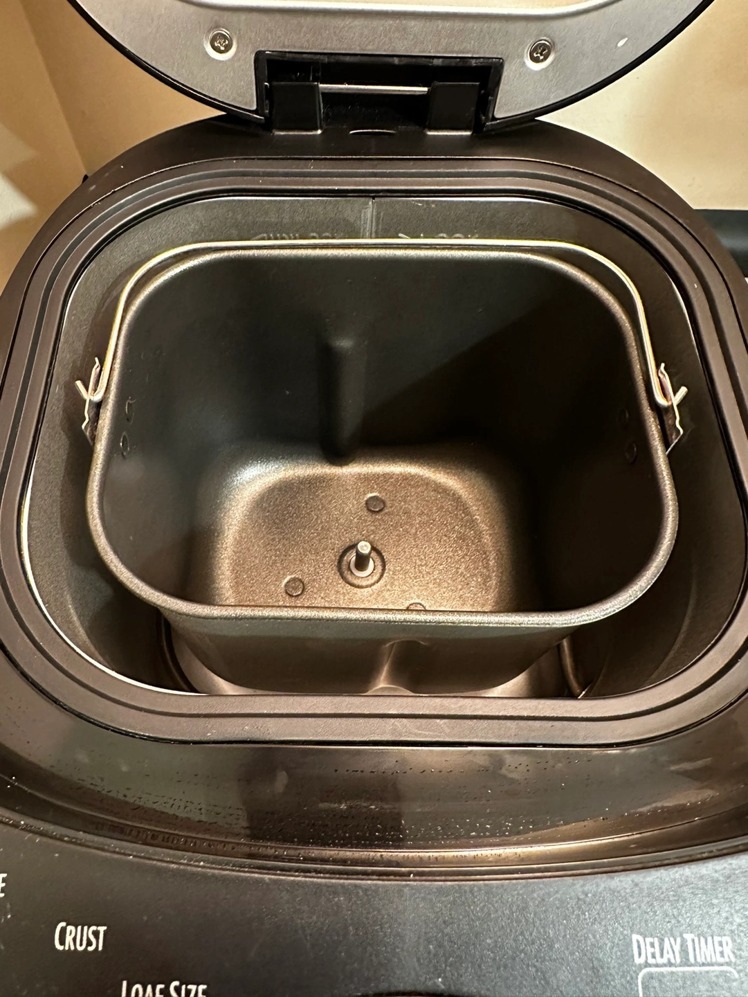 This digital machine offers 12 preprogrammed cycles (Basic, French, Gluten-Free, Quick, Sweet, 1.5lb Express, 2.0lb Express, Dough, Jam, Cake, Whole Grain, Bake), two loaf sizes (1.5lb or 2lb | not adjustable in some of the cycles), three settings for crust colour (light, medium, and dark | not adjustable in some of the cycles), and a delay timer.
