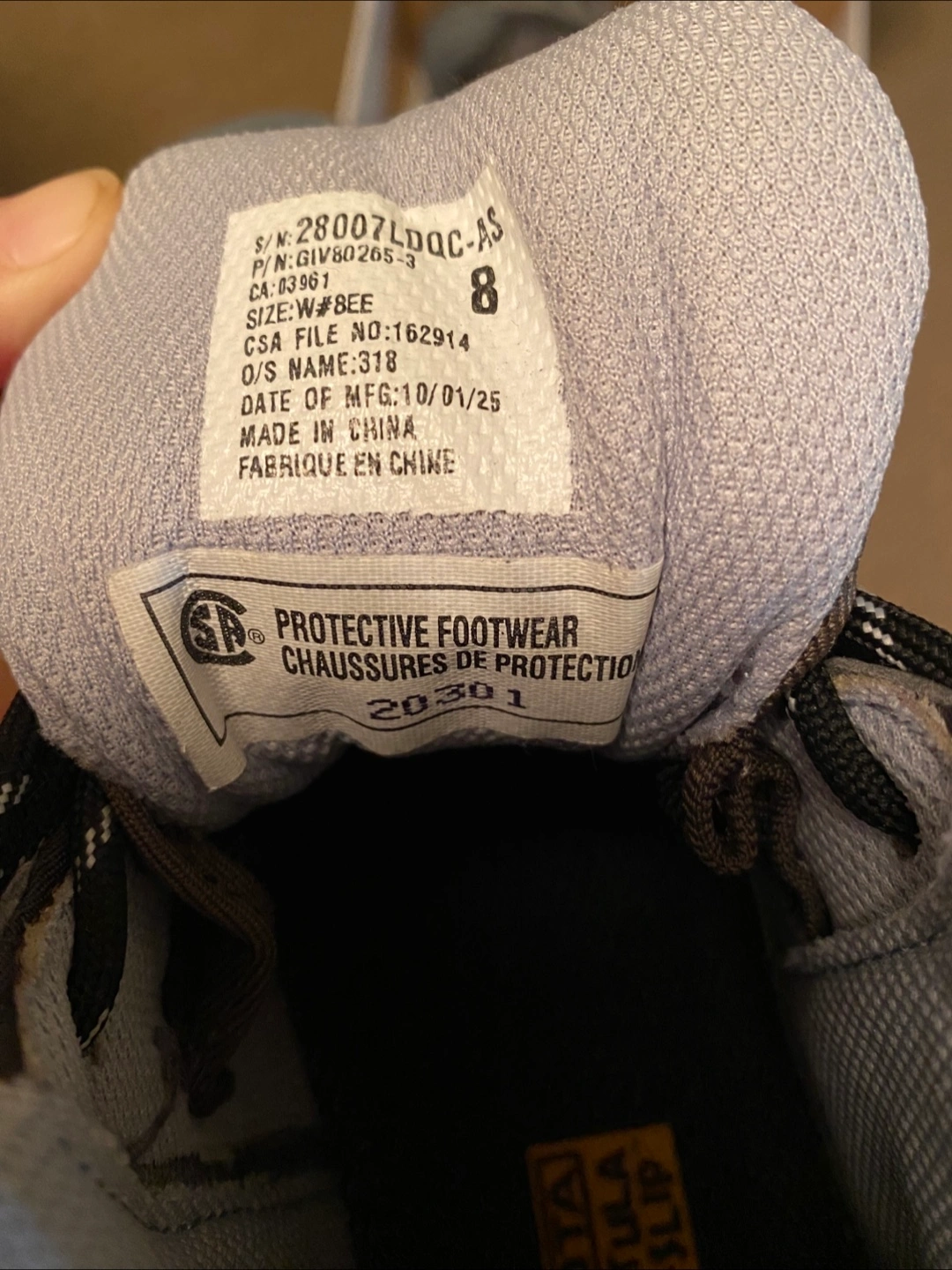 345Worn once for an onsite construction project Originally paid $110 +taxes Reinforced toe to meet safety standards In original box with tags Colour: grey/blue New condition