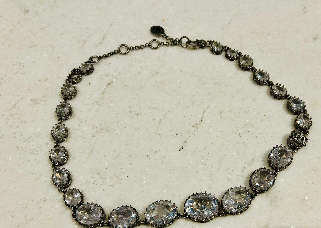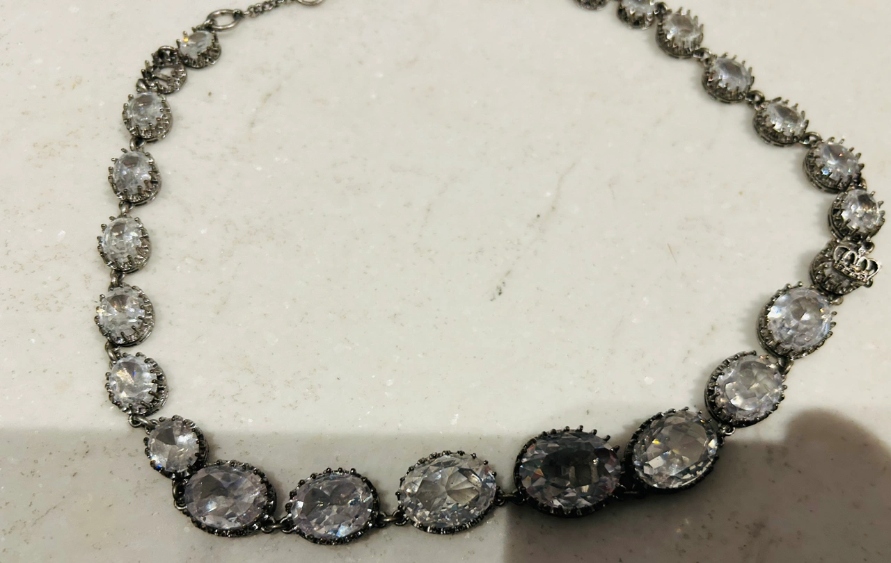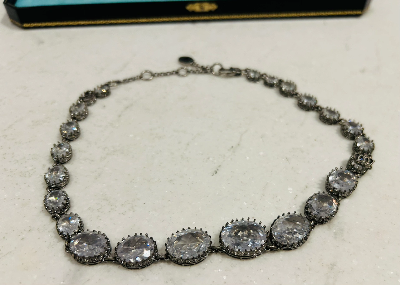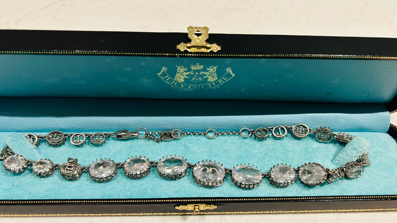 Gorgeous Y2K juicy couture rhinestone necklace in original box. Never worn. Silver plate chain. So beautiful!