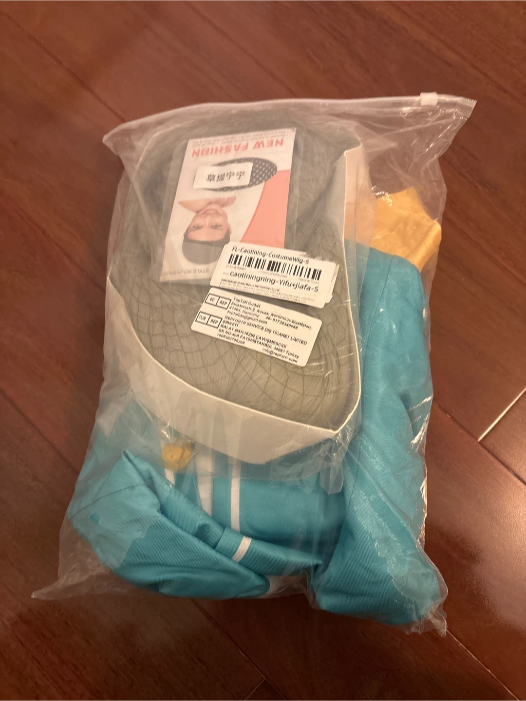 Consist: unstyled wig+wig net, shirt, skirt, other accessories (so everything)
