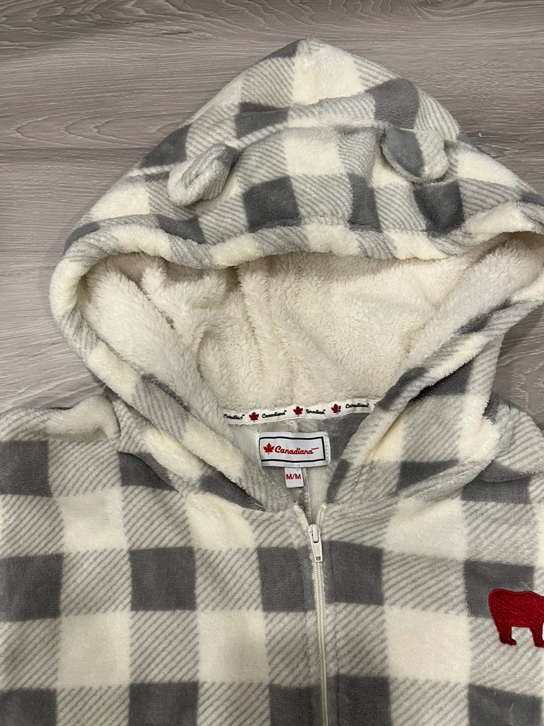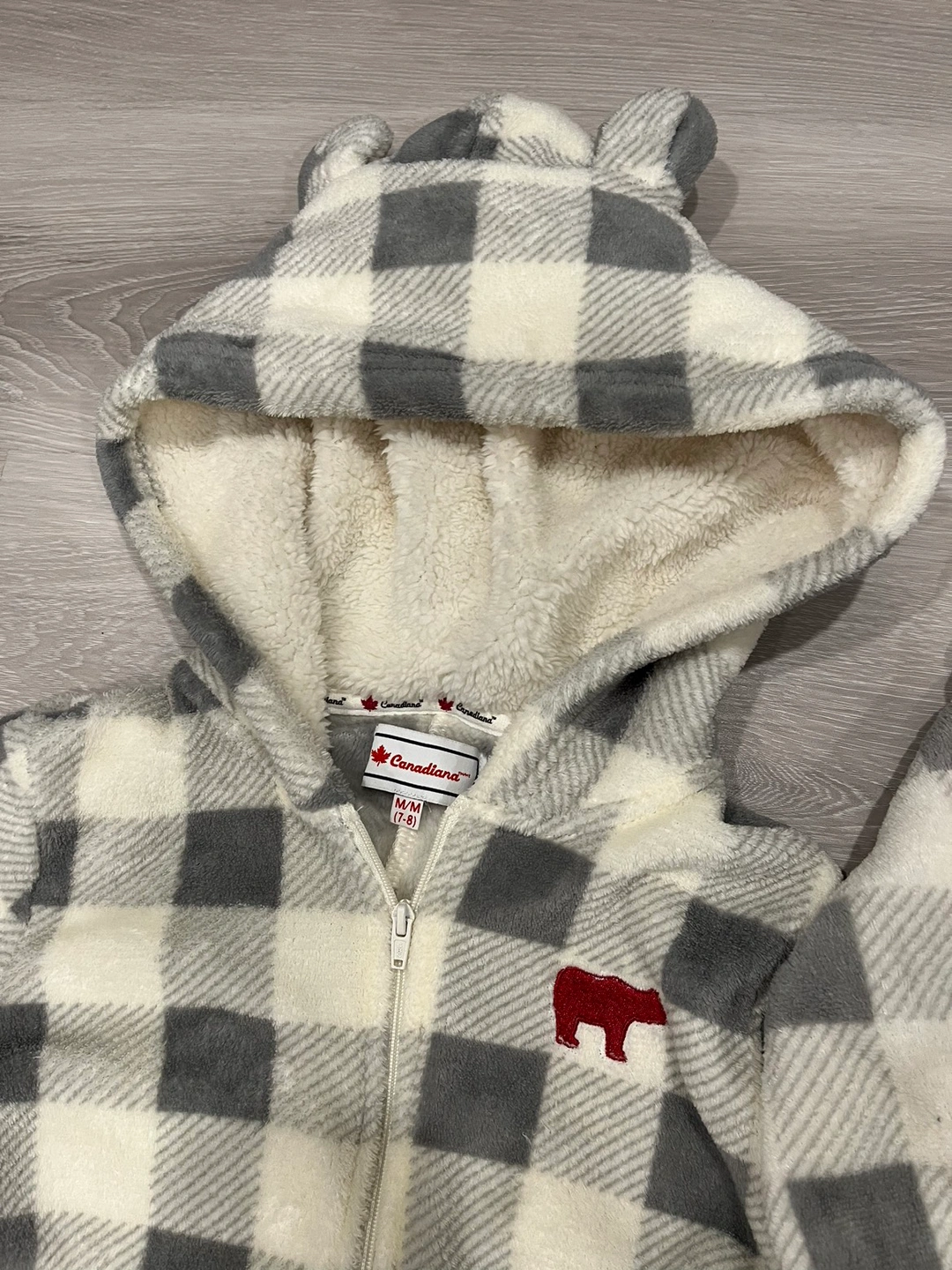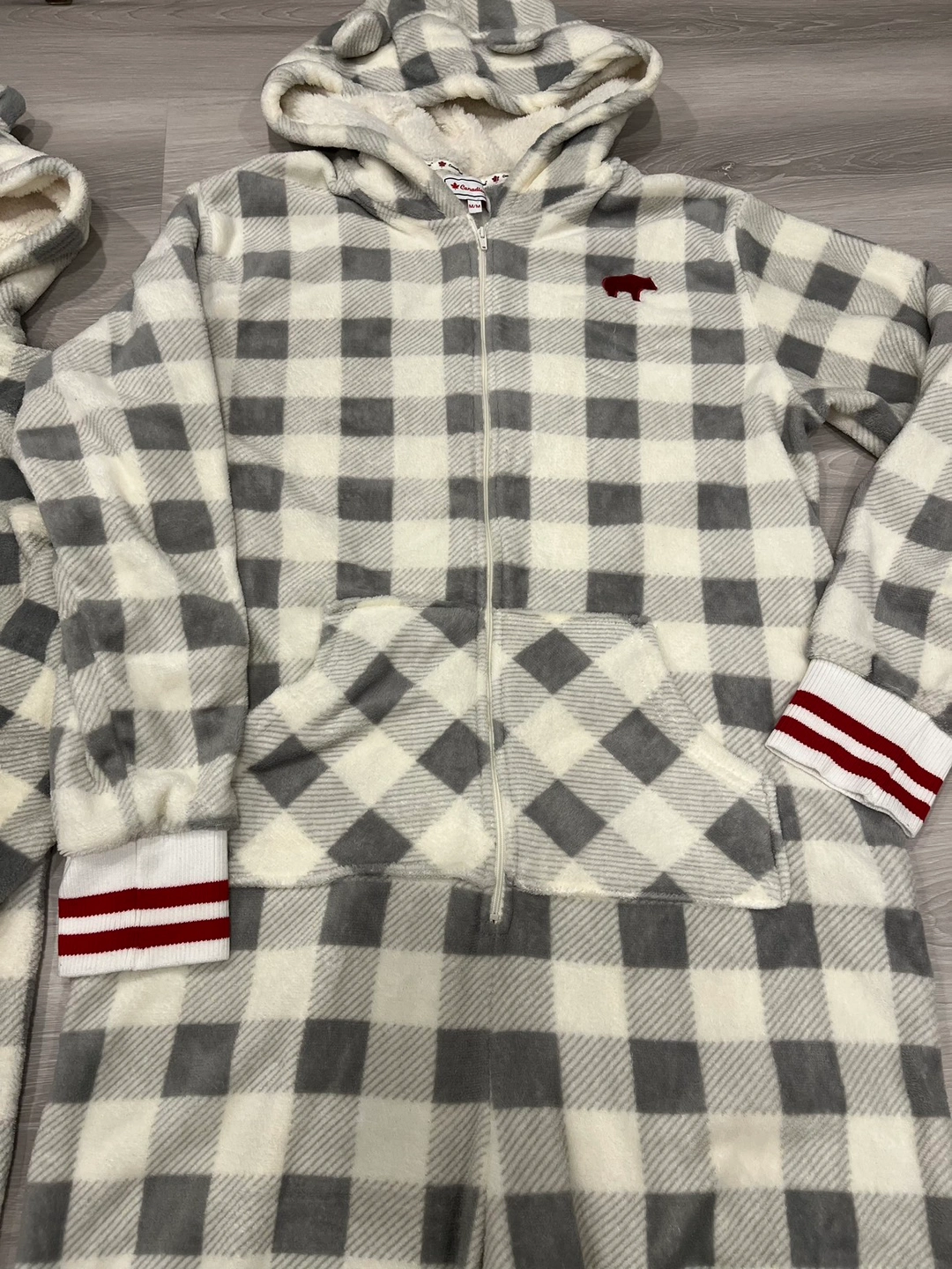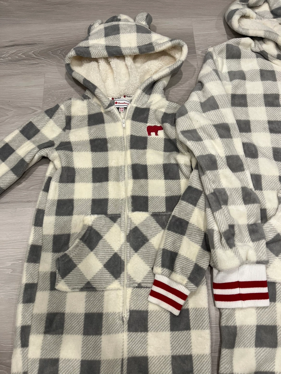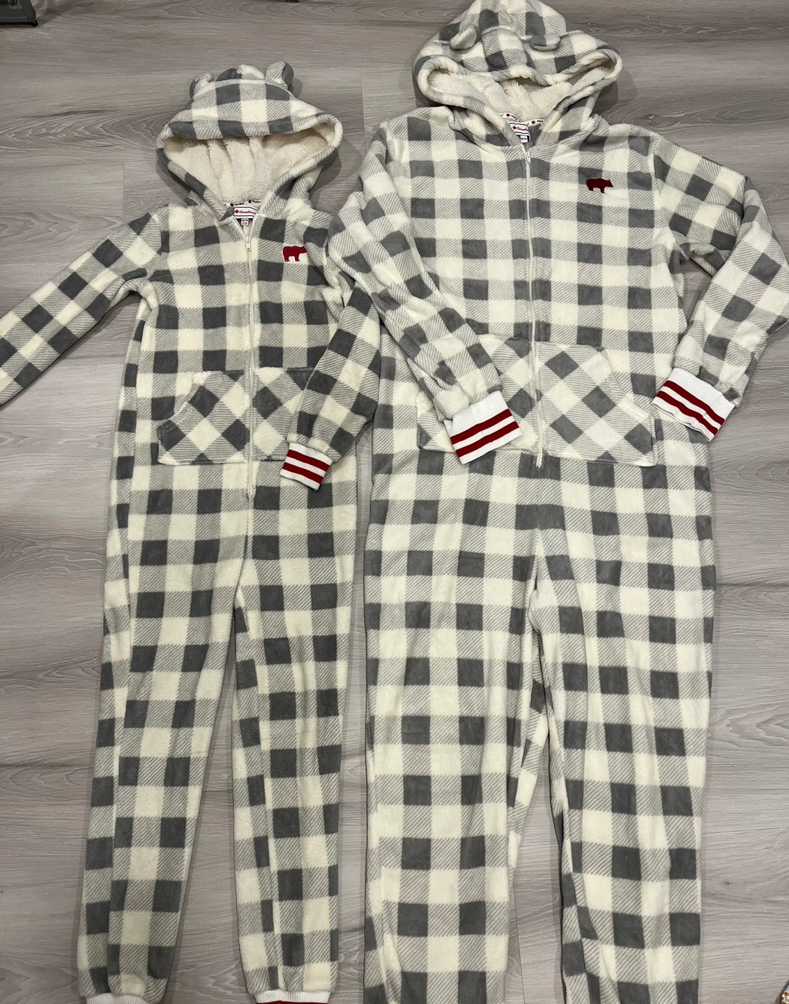 Two matching sleeper onesie one piece pajamas, with bear hood