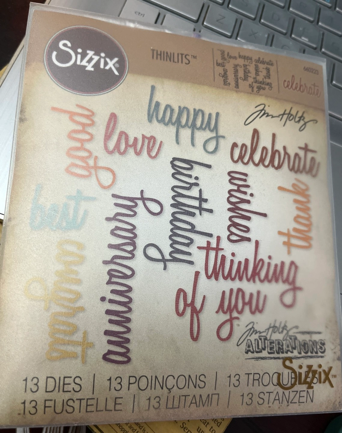 13 pc die set; celebration words in script