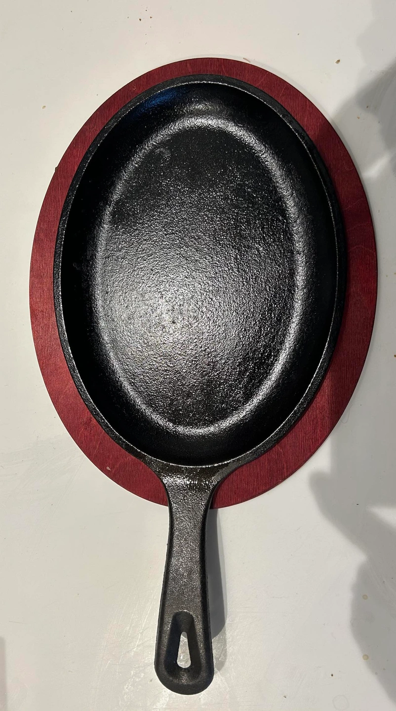 Lodge cast iron pan and customized wooden serving/cooling tray. I’m like new condition. Only