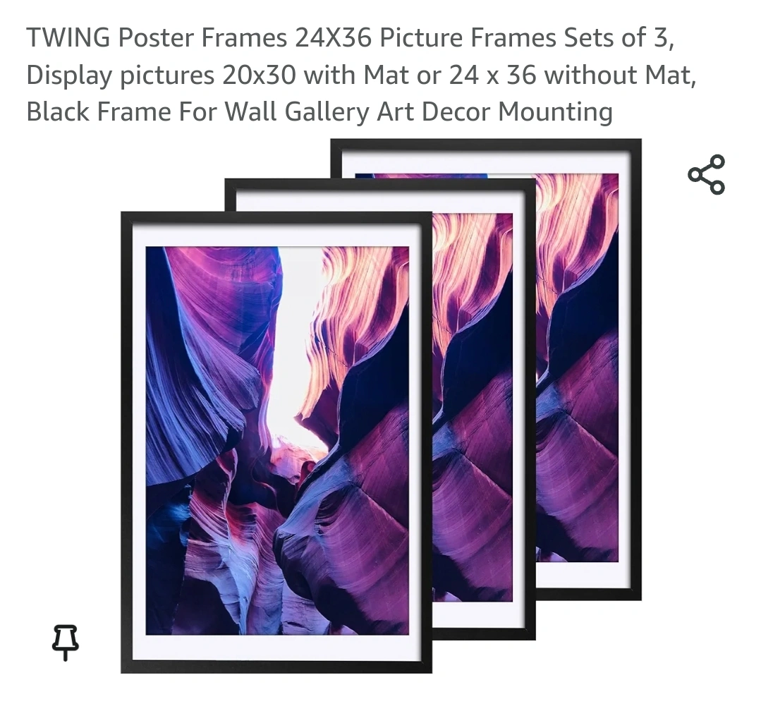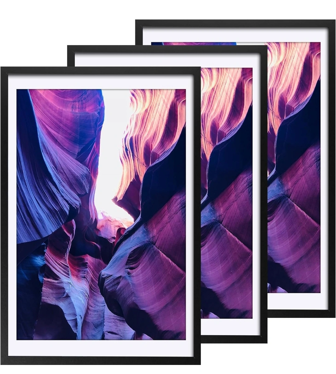 TWING Poster Frames 24X36 Picture Frames Sets of 3, Display pictures 20x30 with Mat or 24 x 36 without Mat, Black Frame For Wall Gallery Art Decor Mounting