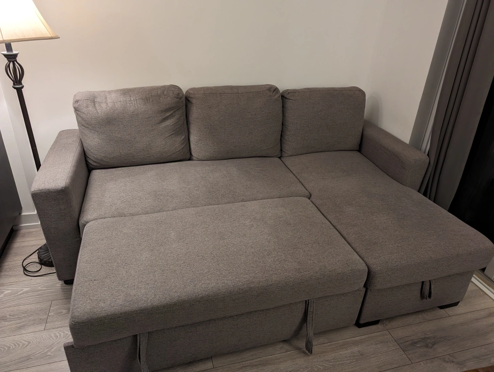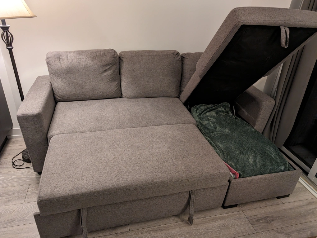 Pull out sofa with lots of storage in very good condition