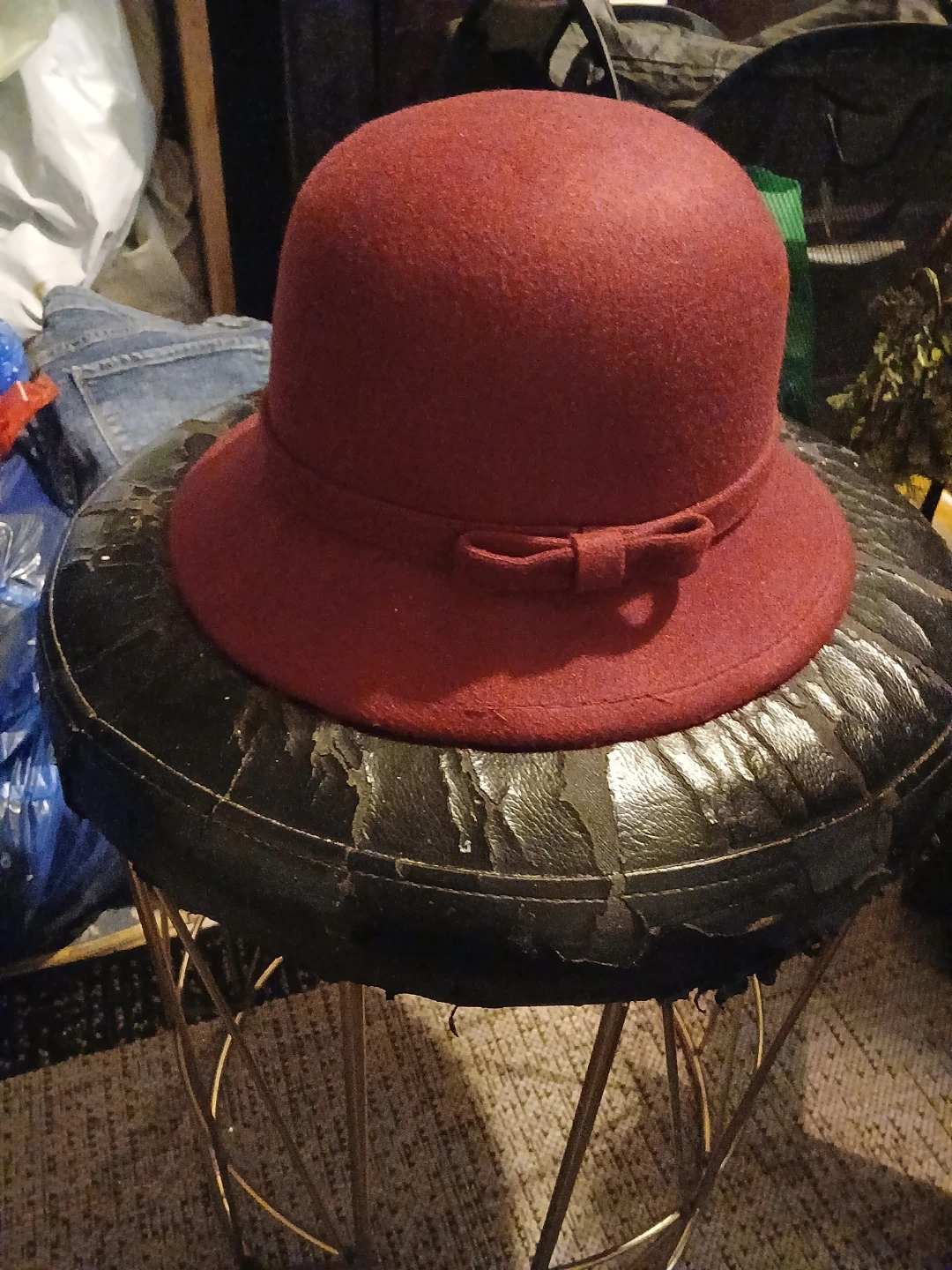 Burgundy Cloche Hat with Bow Accent