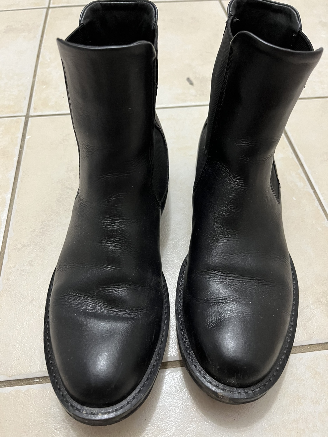 A timeless Chelsea style in rich, premium cow leather which is soft, light and breathable. Hitting just above the ankle, this style is perfect when paired with jeans or a dress. Available in either leather or suede combinations. Size 38 euro = 7/7.5 US Used maybe 6-7 times. Good condition!