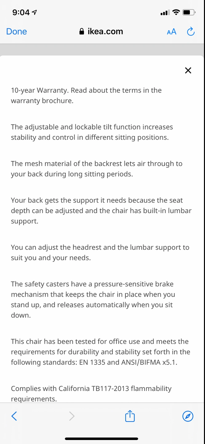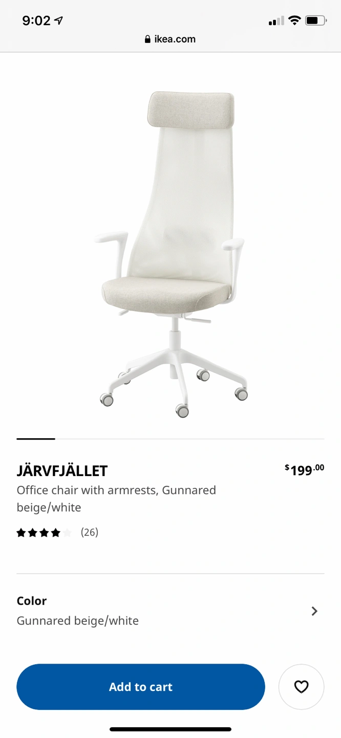 Beautiful desk chair that has tons of adjustments (see video on ikea site). Arms can be kept on or taken off. Great for back to school or home office.