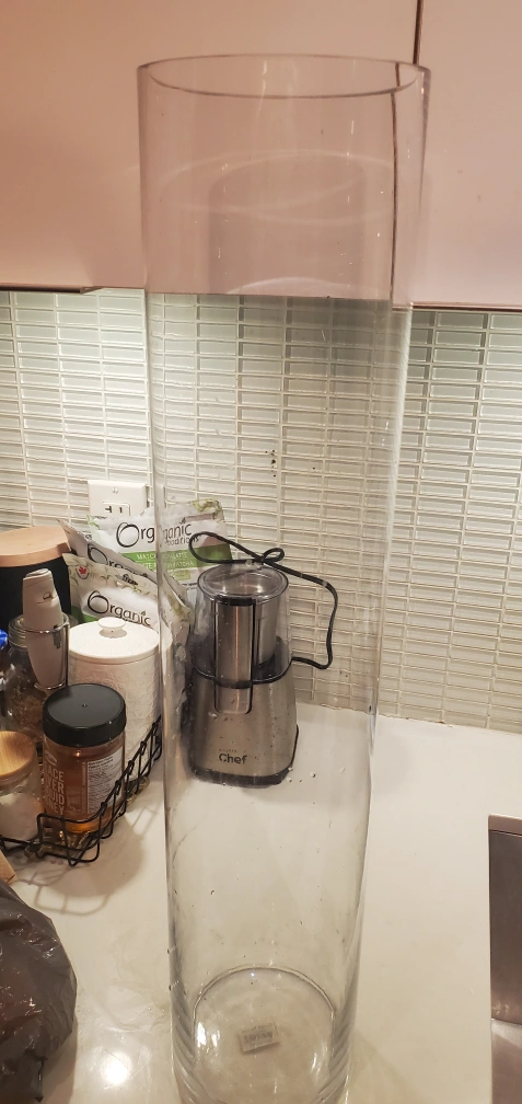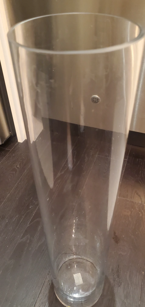 Clear tall circular vase I bought at Home sense but no room.