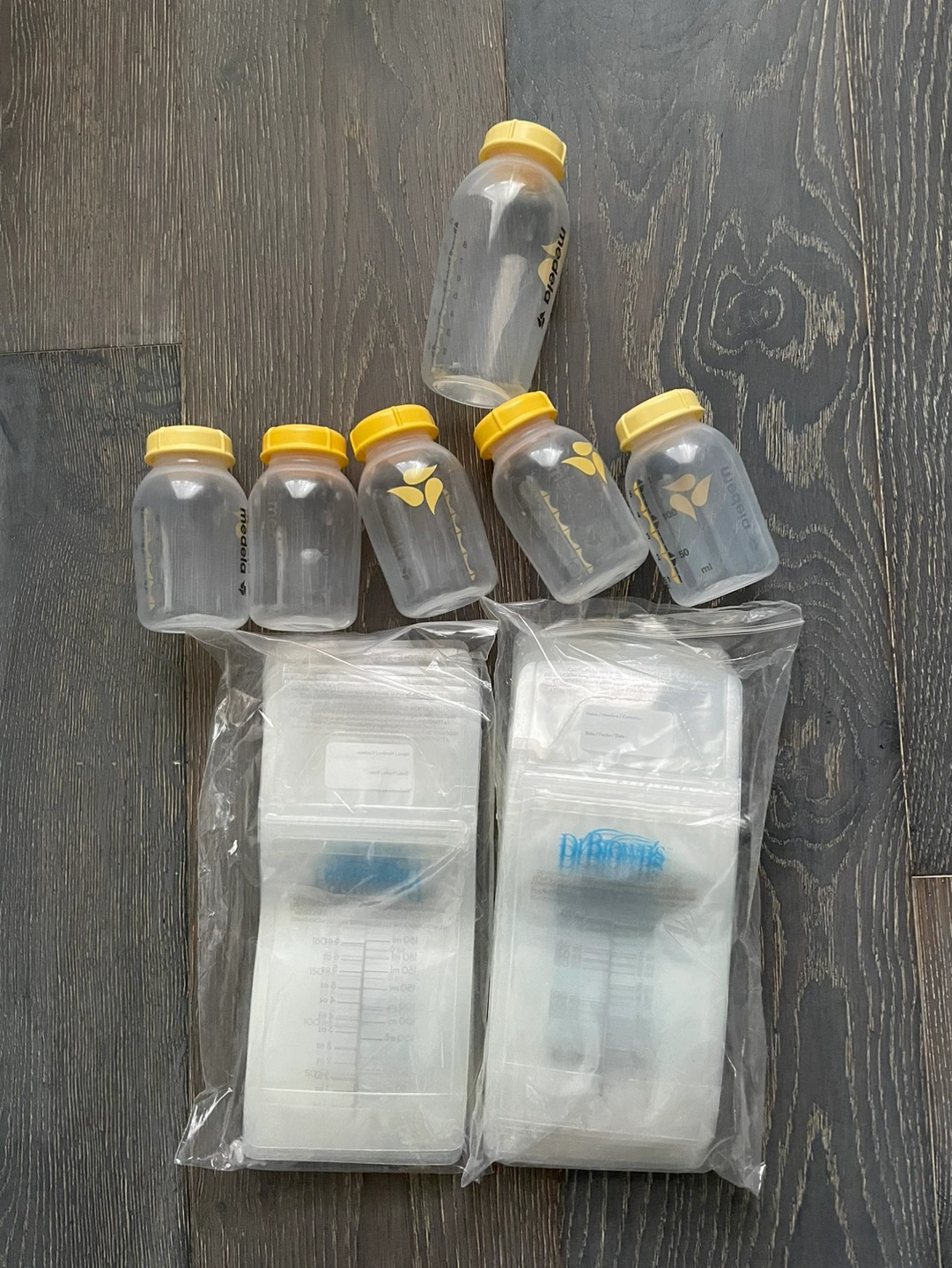 Free - breast milk bags are new and unused and five, five oz bottles and one, eight oz bottle.