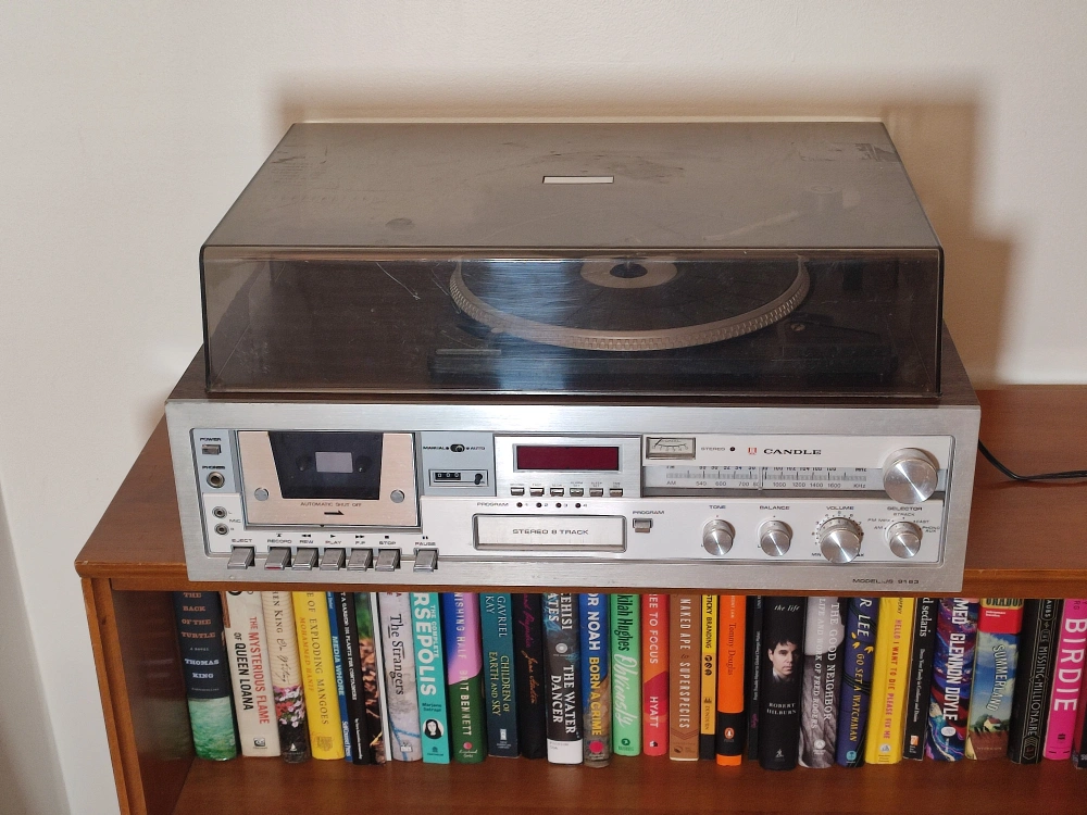 Candle Stereo JS-9163 from the 1970s. Turntable for Vinyl records, works great. Cassette player and 8 track player do not work.