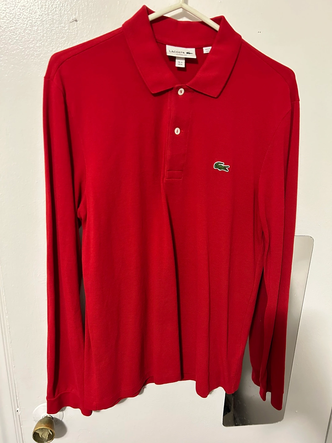 Long sleeve bright red long sleeve polo, retail $145, selling for: $15