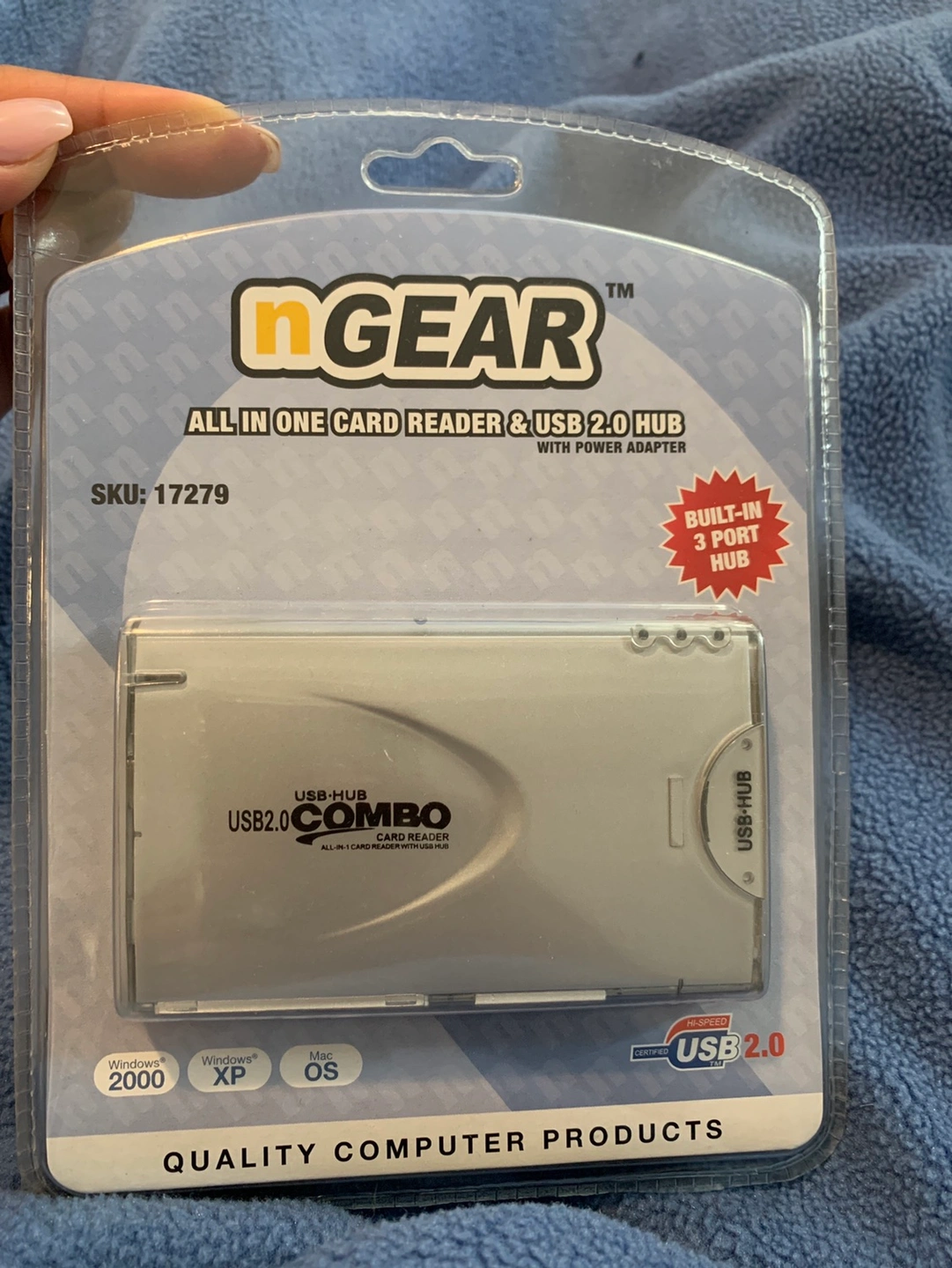 nGEAR TM All in one card reader & USB 2.0 HUB with a power adapter is still sealed in the hard plastic. It’s never been opened.