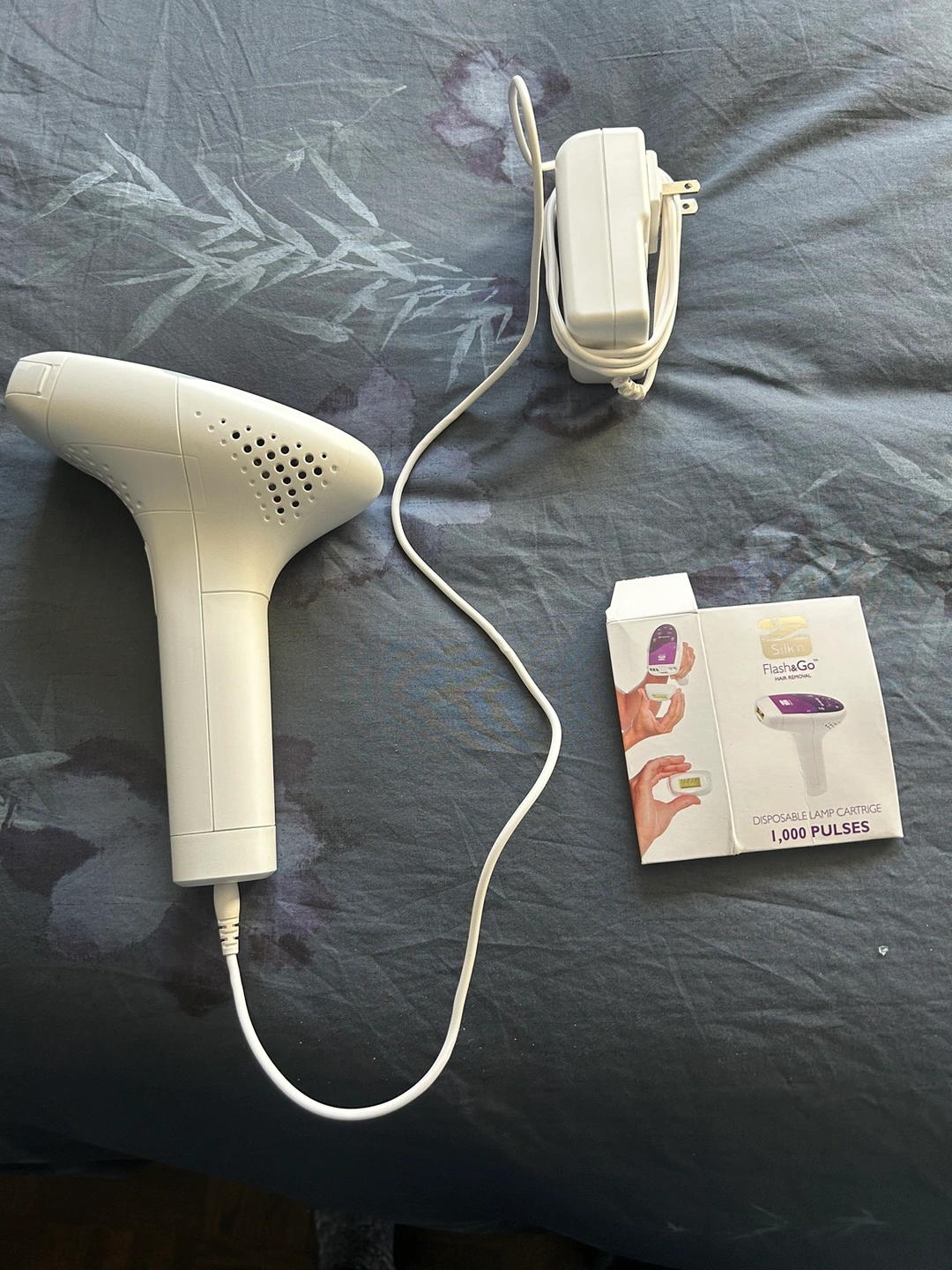 Laser hair removal. With cartridge. And adapter. And box from cartridge so you’ll be able to buy more. Works well.