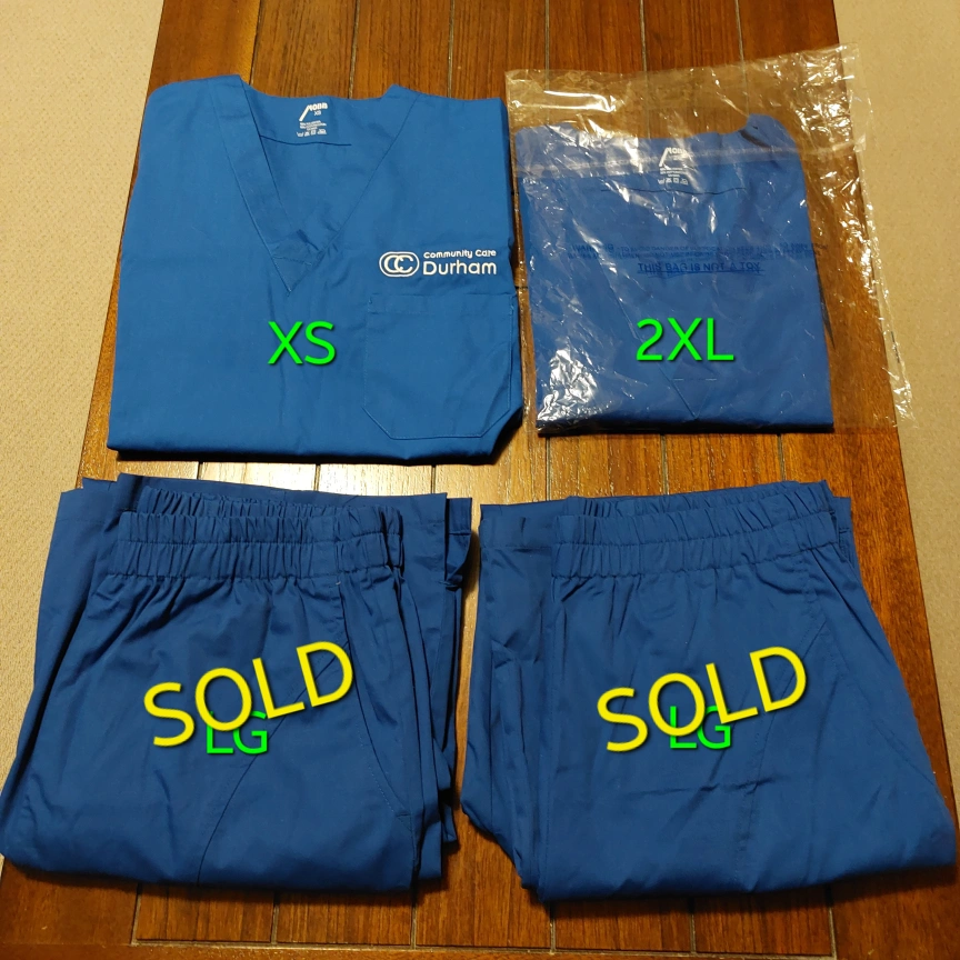43Brand new ladies scrubs. Shirts both say Community Care Durham 1 XS t-shirt 1 2XL t-shirt 2 LG pants (SOLD) $5 each Pick up near Grandview/Beatrice in Oshawa