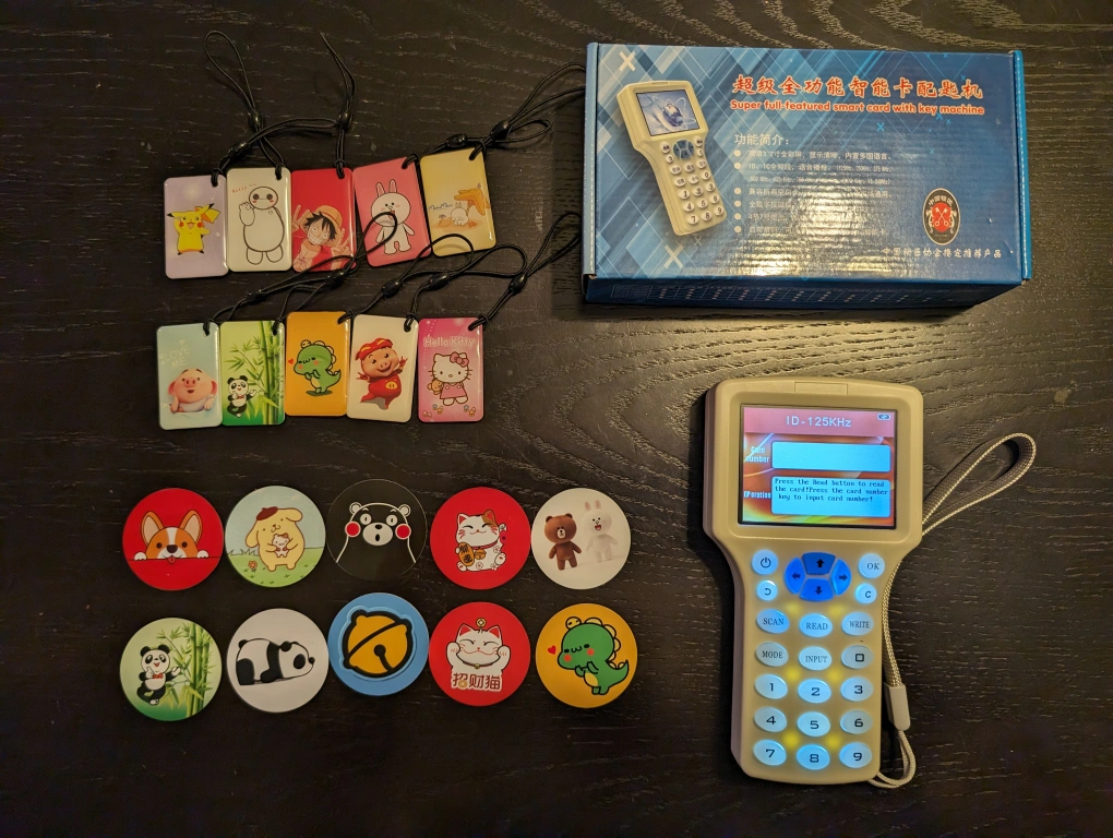 Key fob reader/duplicator (125khz) with fobs and stickers