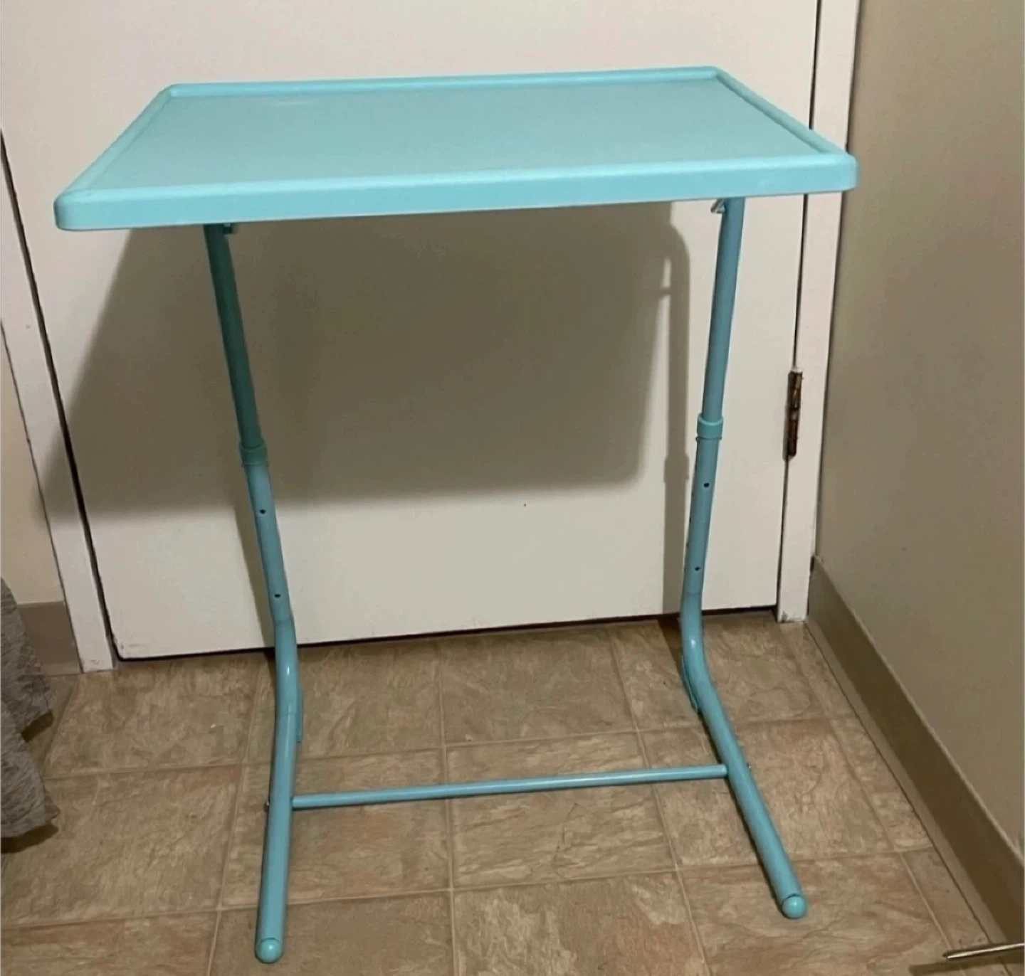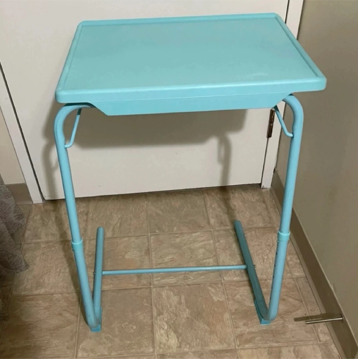The tray can be folded to a more compact size and stored next to a couch, under the bed, or in a closet to save space when it’s not in use.