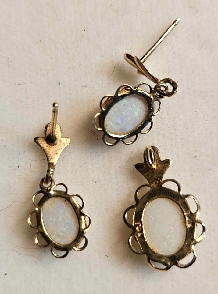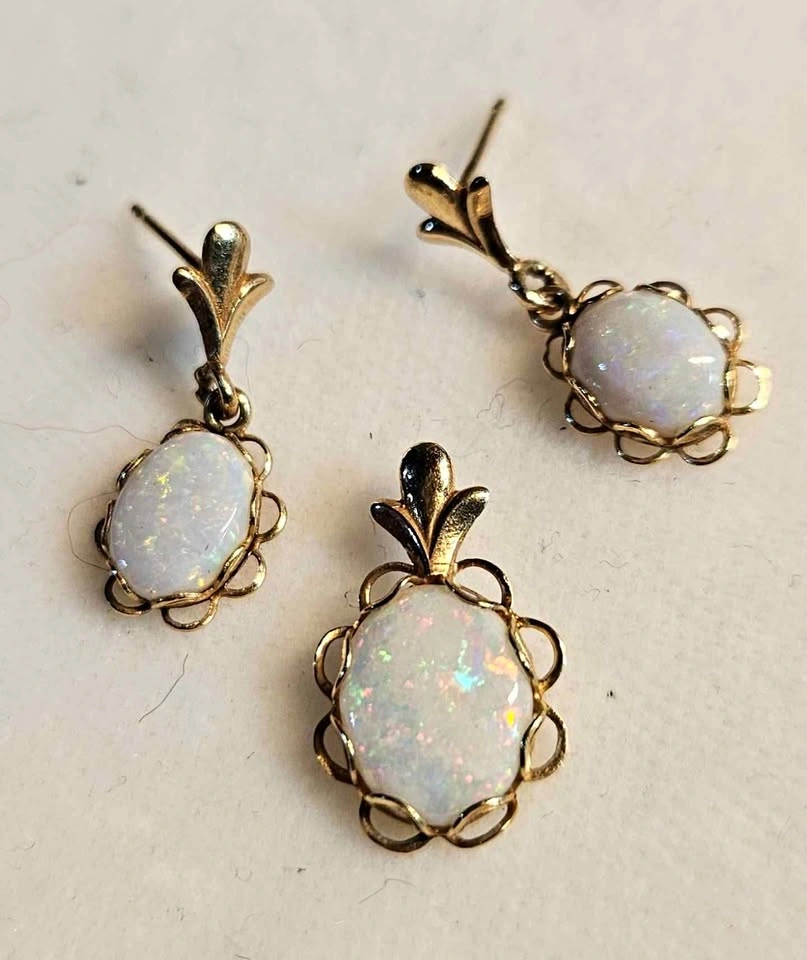 Set 14k yellow gold opal earrings and pendant. Stunning fire in these Opals, just see to appreciate.