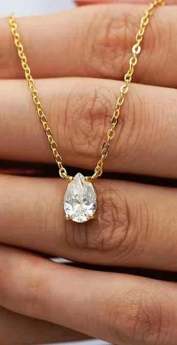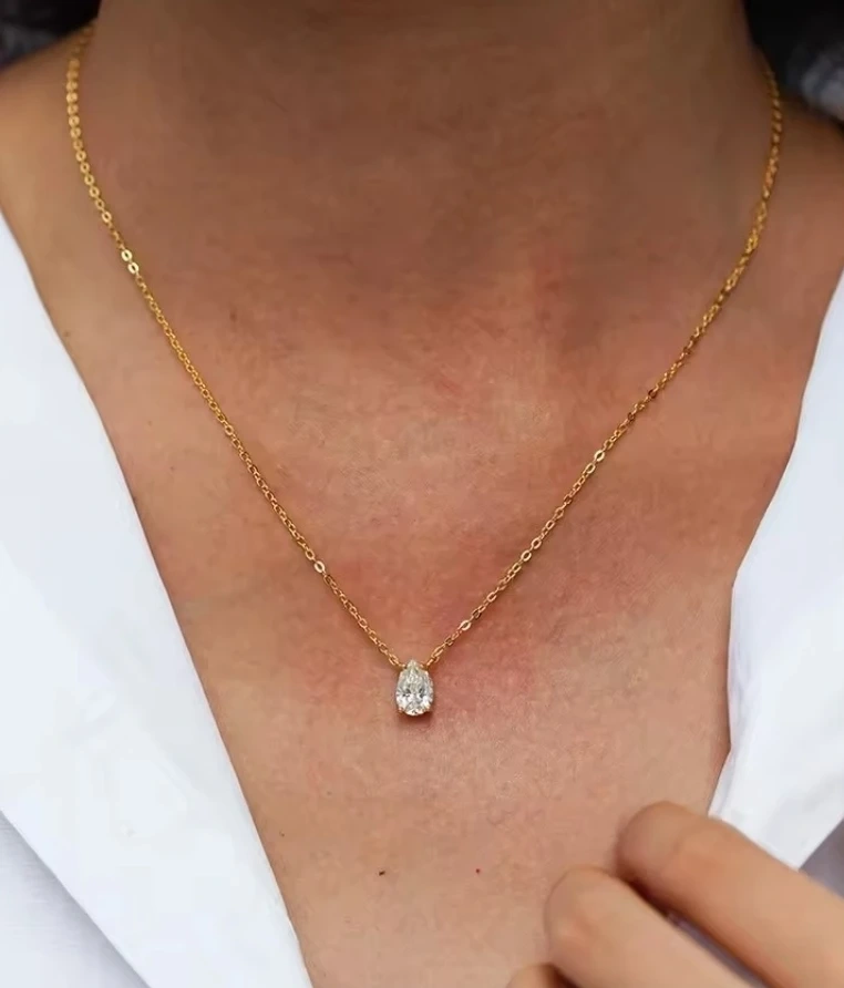 2518k genuine Authentic Gold Necklace for women. has a 1crt D White lb Diamond simple water drop pear shaped Pendant. versatile collarbone chain jewelry. 2.1g with certificate has 14k as well for $ 309.00.