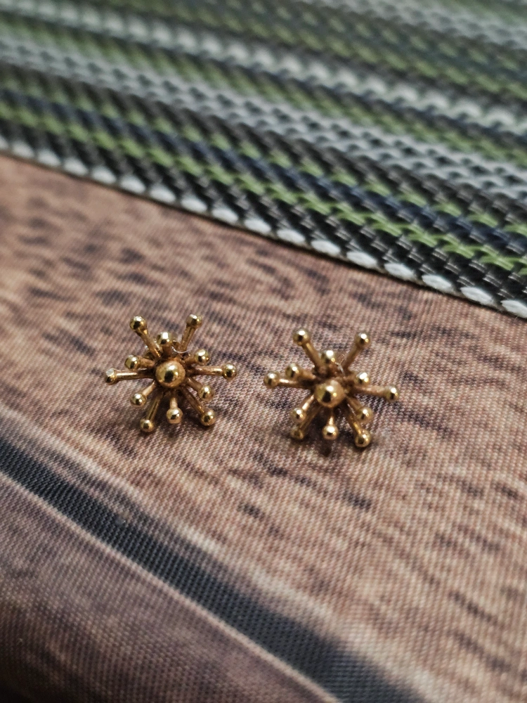 Selling a pair of 14K gold stud earrings. They weigh 1.53 grams and are in great condition. Perfect for adding a touch of elegance to any outfit!