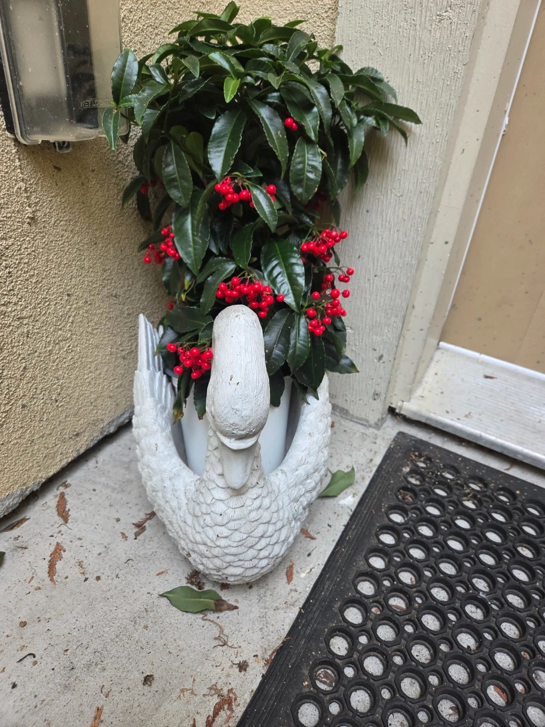 A charming white swan planter from Anthropologie. It's made of durable material and perfect for your favourite plants! Adds a whimsical touch to any outdoor or indoor space.