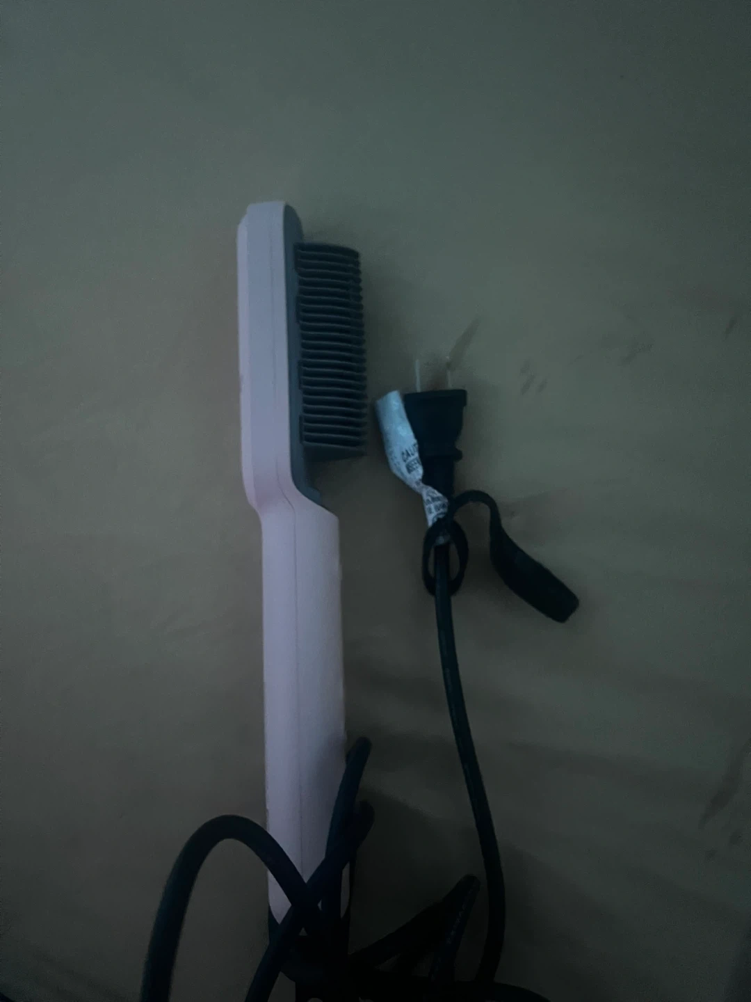 This is a pink hair straightening brush from WAVYTALK. It features multiple heat settings indicated by LED lights and power buttons. The brush has a durable cord and plug for use.