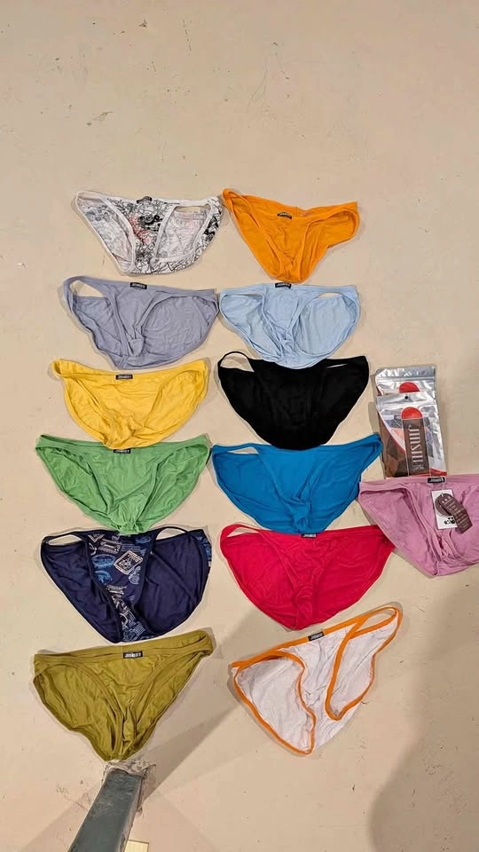 3615 JINSHI XL Men's low rise bikini briefs in various colours, 3 of them new with tags. New would be $66+. Very soft viscose. Selling as a set - only $40 for all.