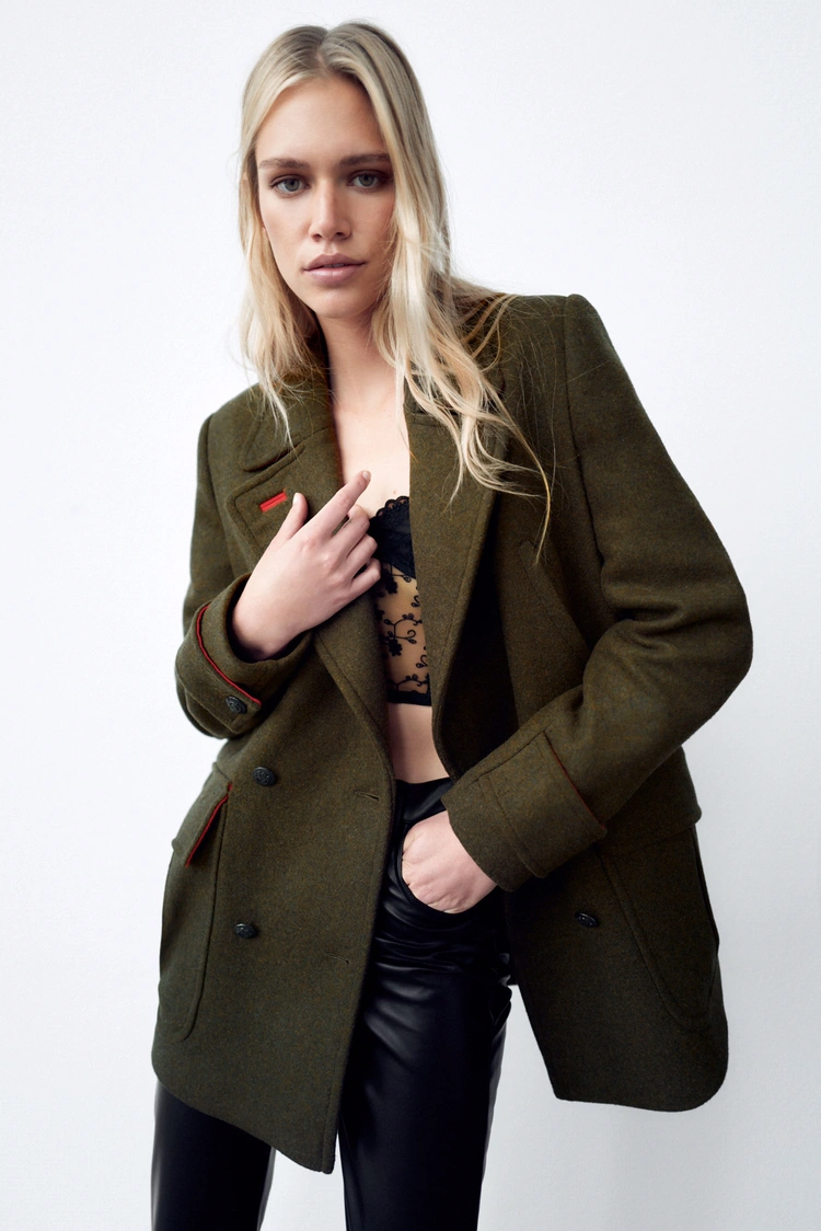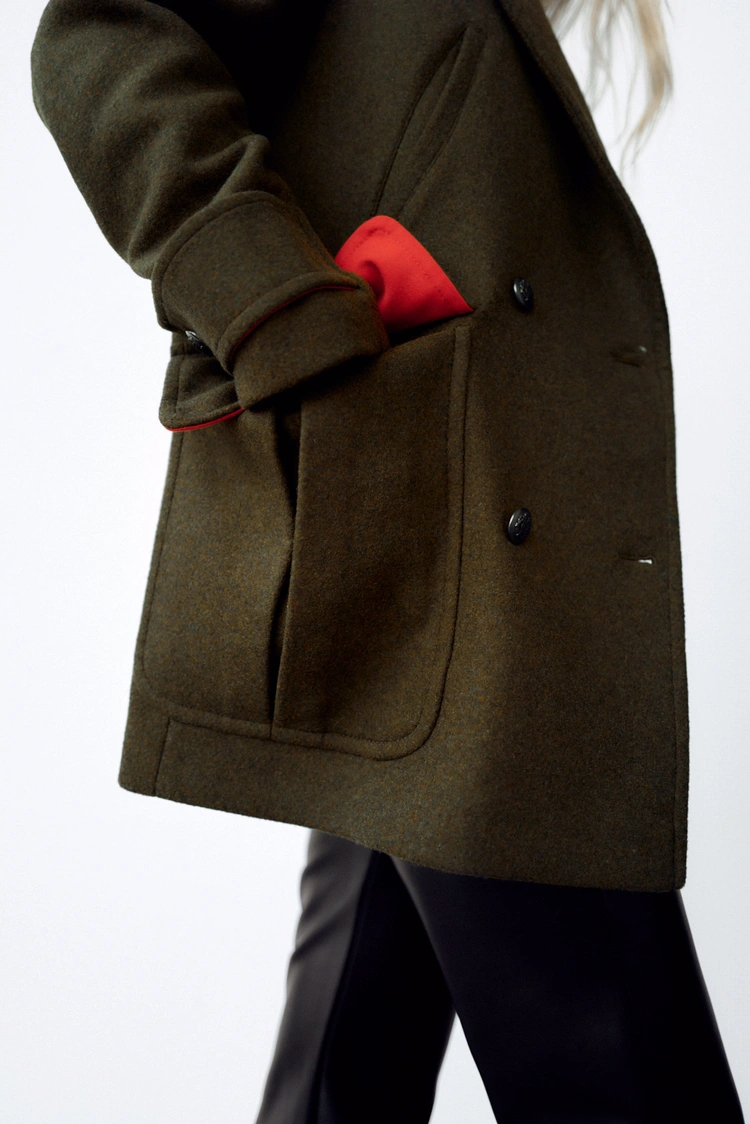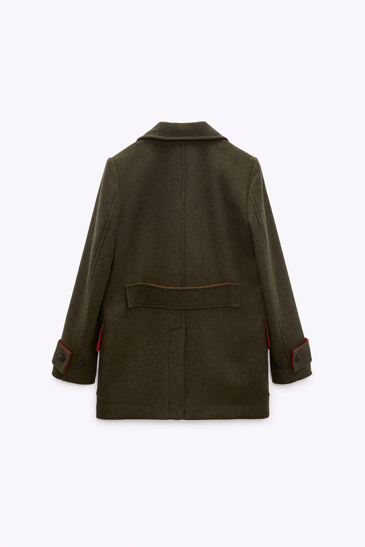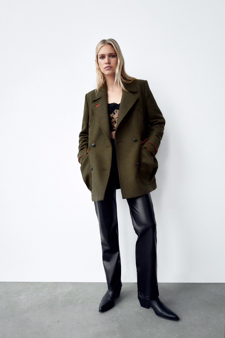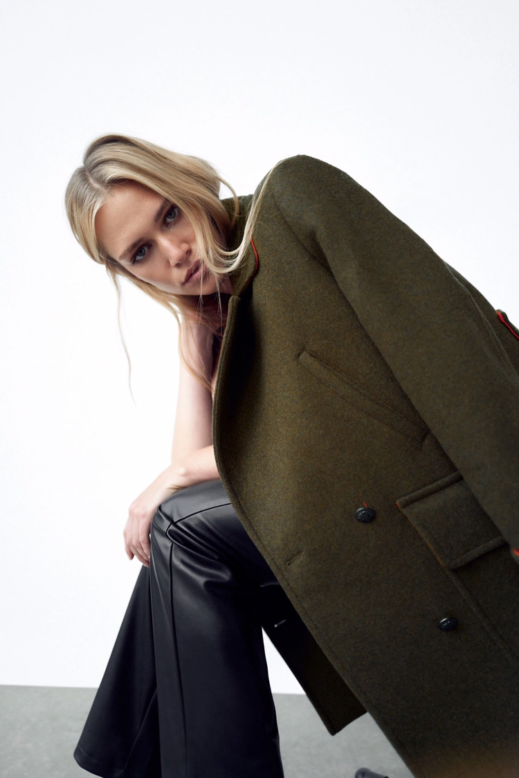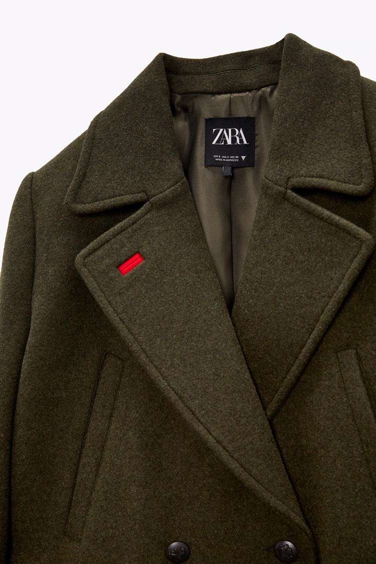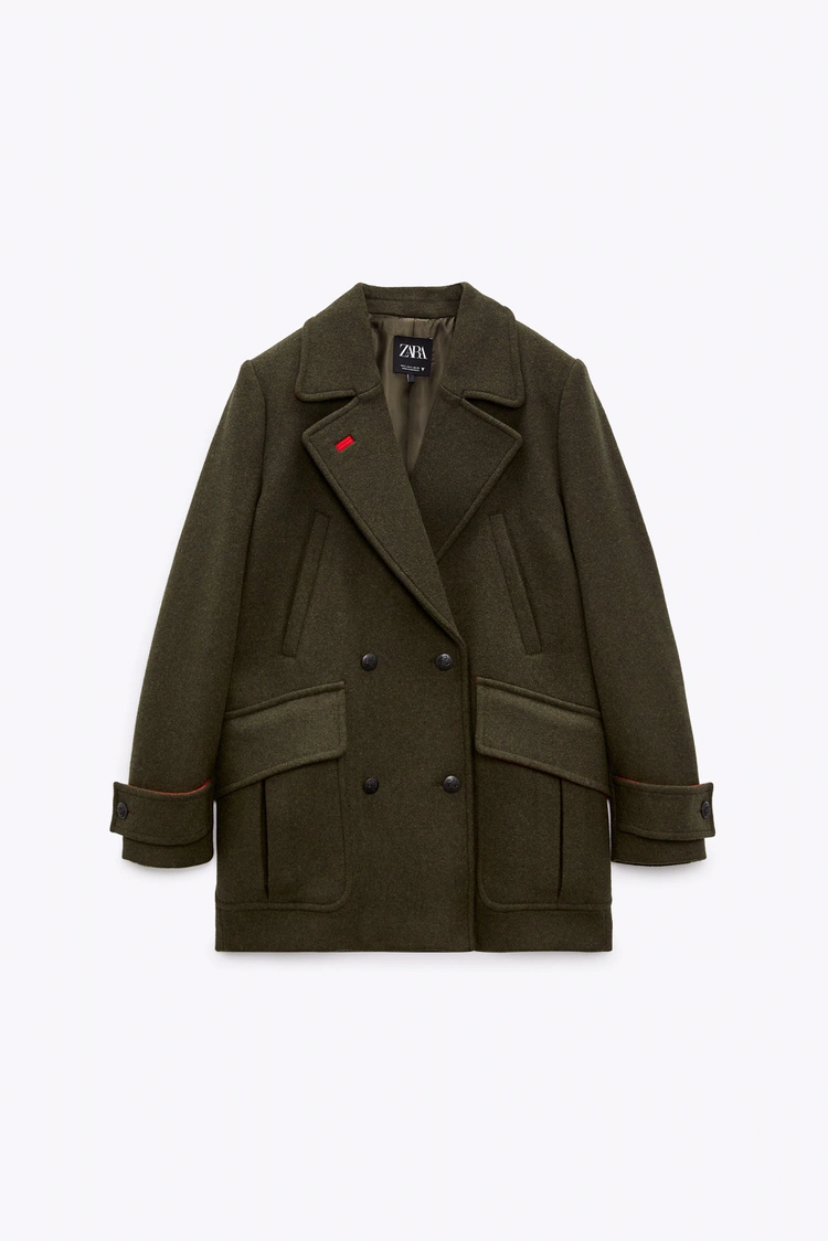 Zara Double Breasted Military Wool Coat S
