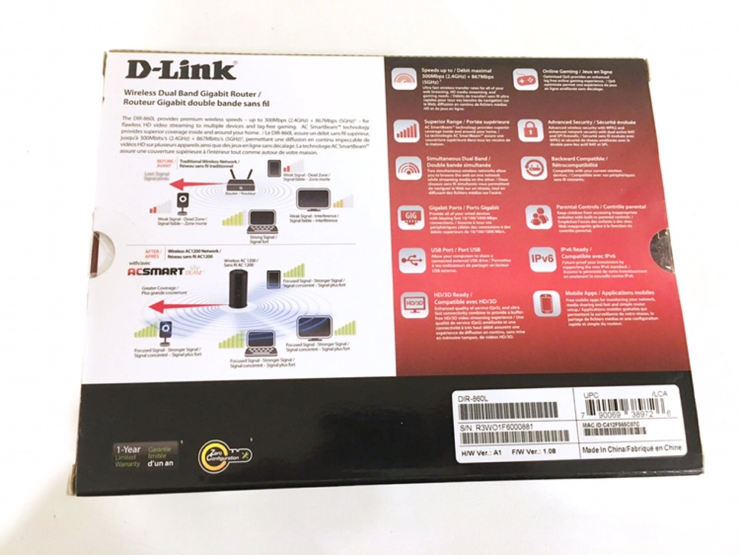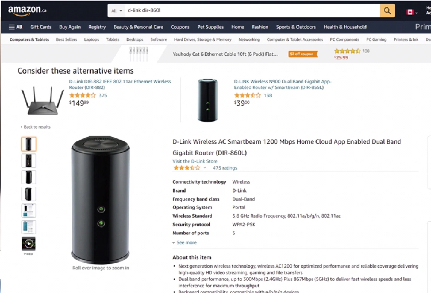 $25 D-Link Wireless AC Smartbeam 1200 Mbps Home Cloud App Enabled Dual Band Gigabit Router (DIR-860L).