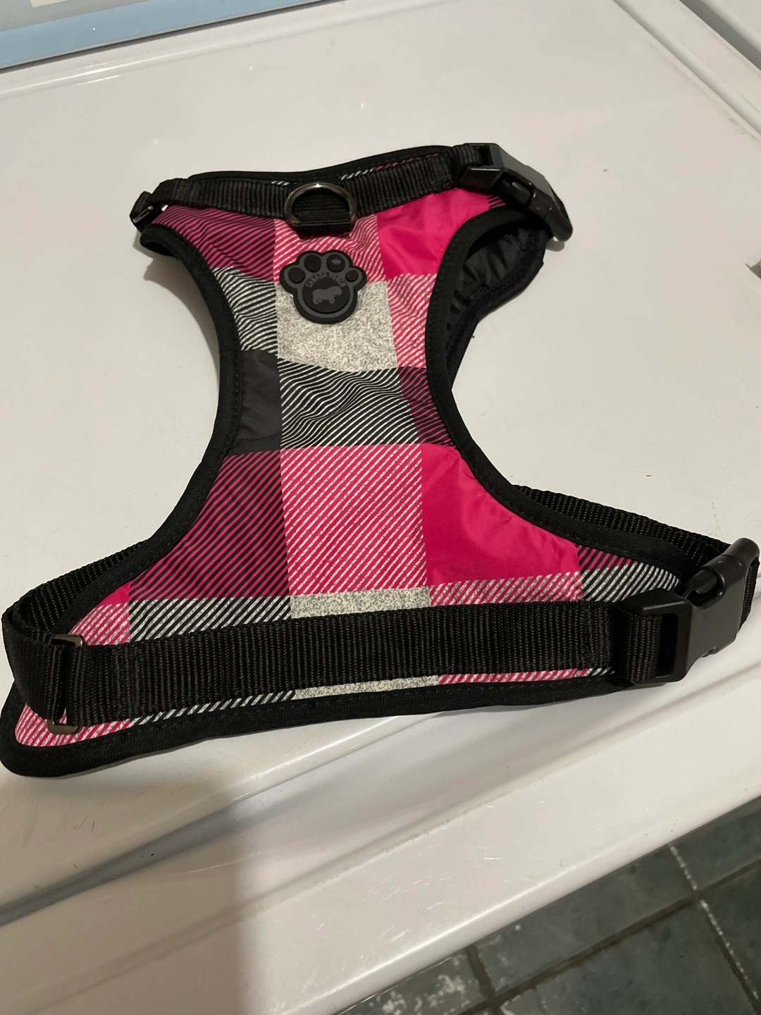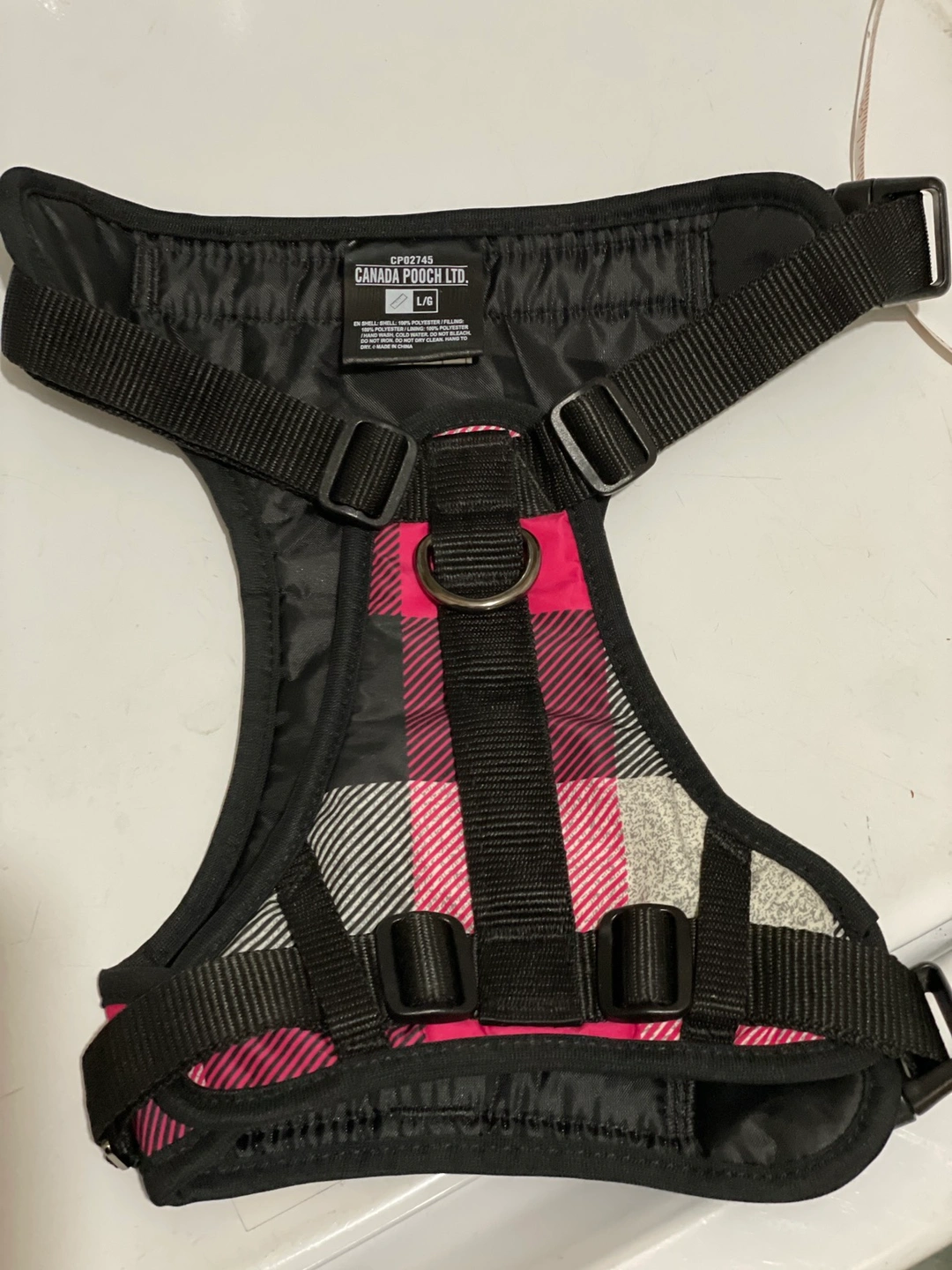 Dog harness made by Canada Pooch. A quality materials and its like new, only used once because dont like the color. My dog is a male shitzu weighing 22 lbs.