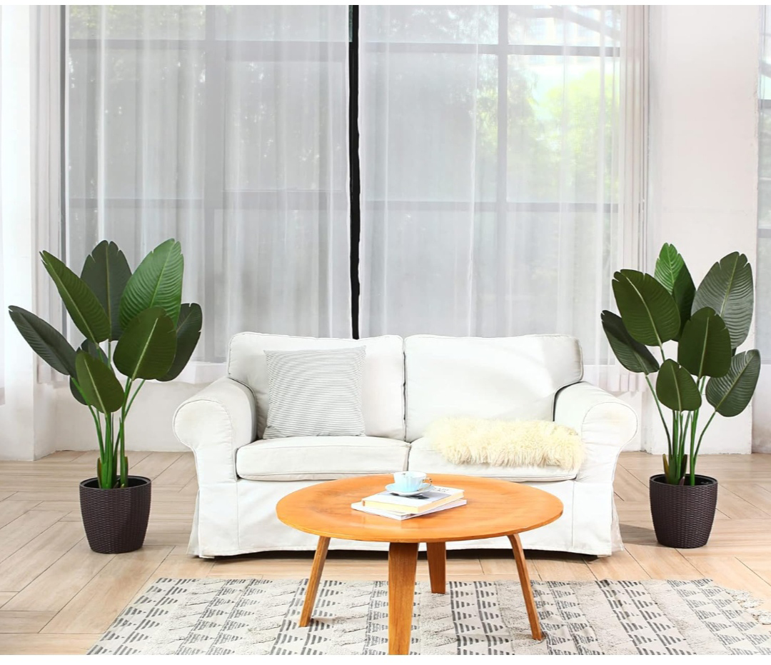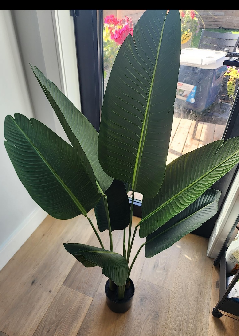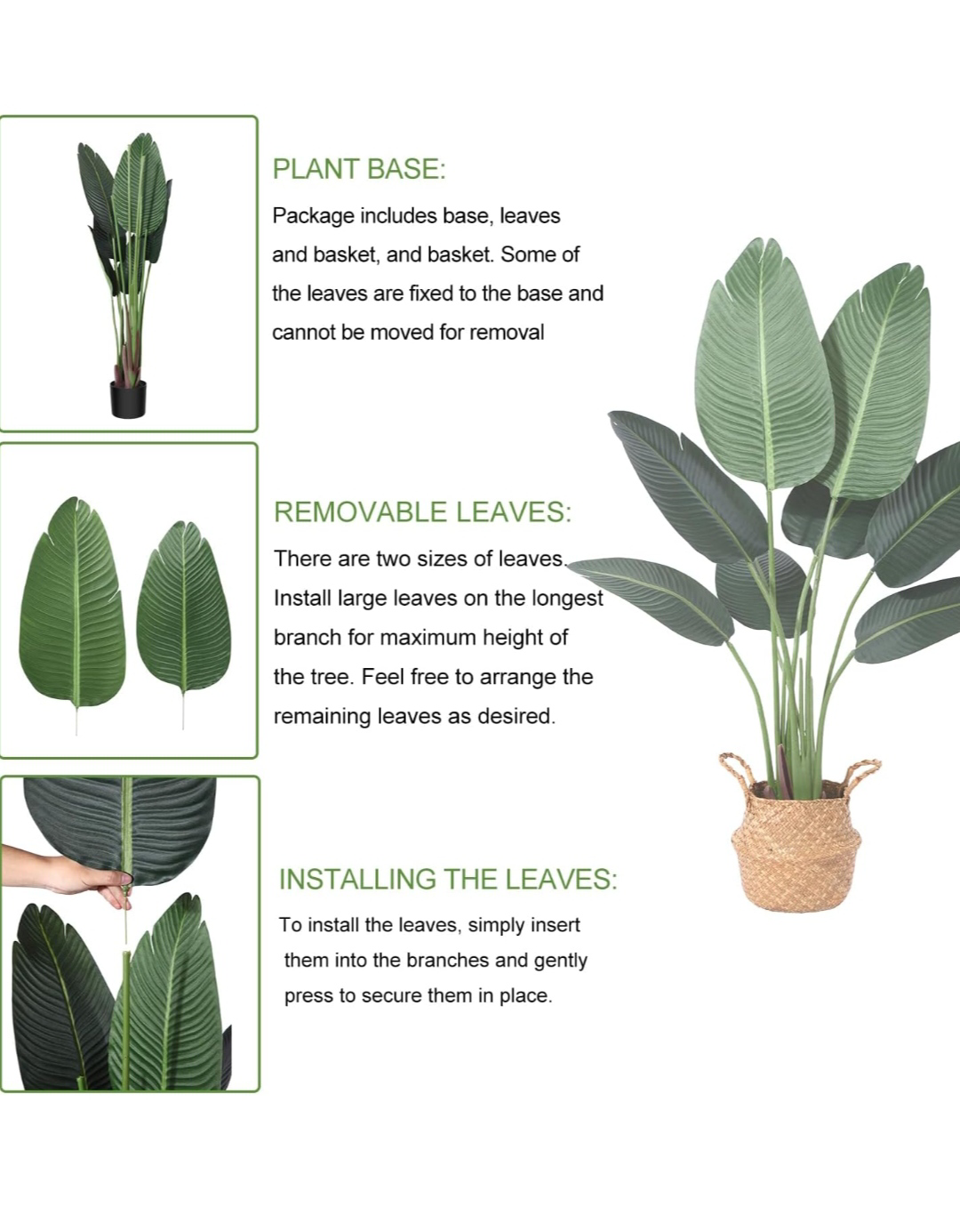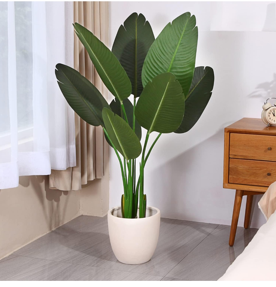 86Artificial Bird of Paradise Plants 4 Ft Fake Tropical Palm Tree with 8 Trunks in Pot and Woven Seagrass Belly Basket Perfect Faux Plant for Home Indoor Outdoor Office Modern Decor Green 1 Pc
