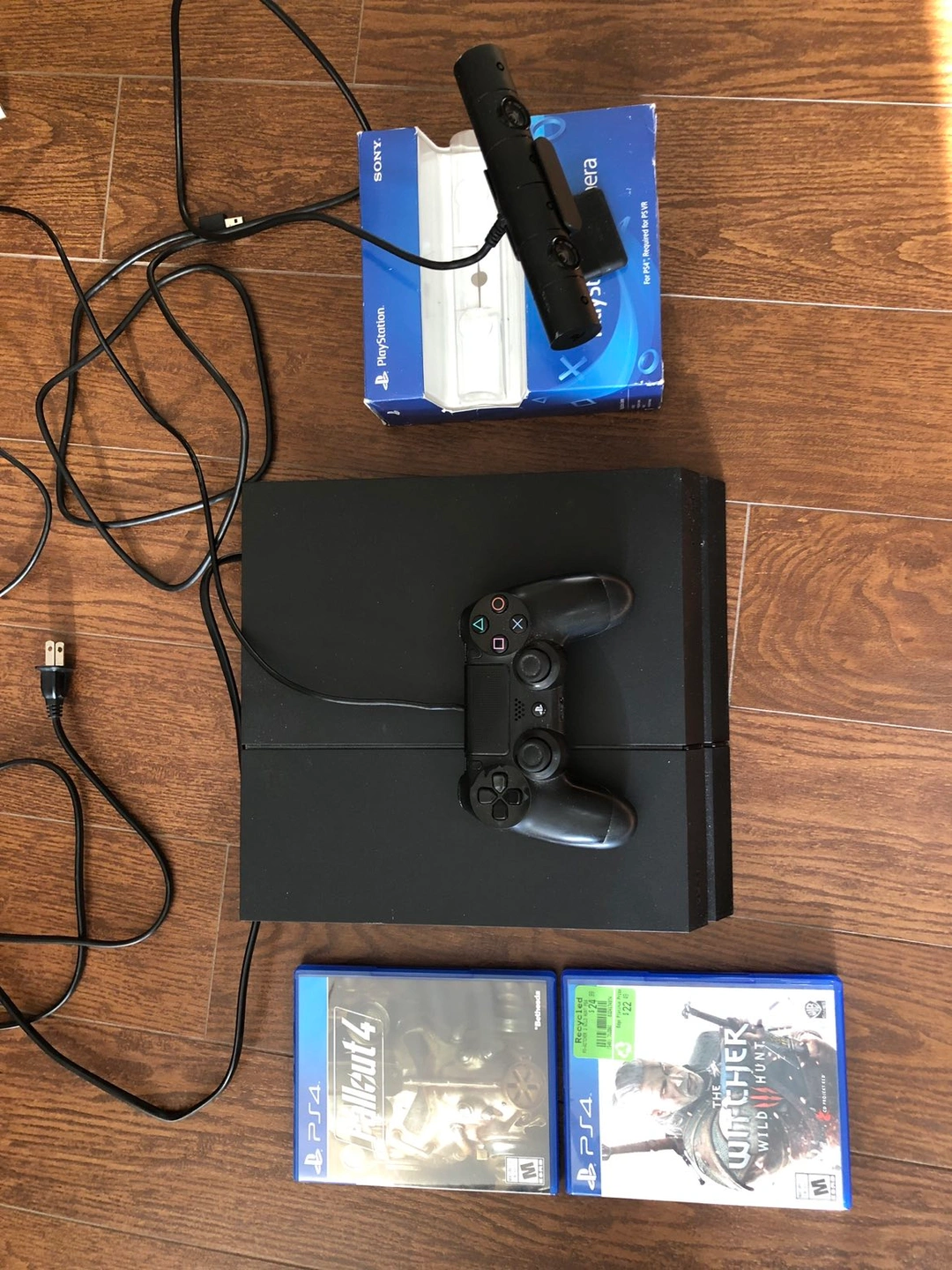 Console and one controller, but the controller only works when plugged in. Suggest getting a new one entirely.