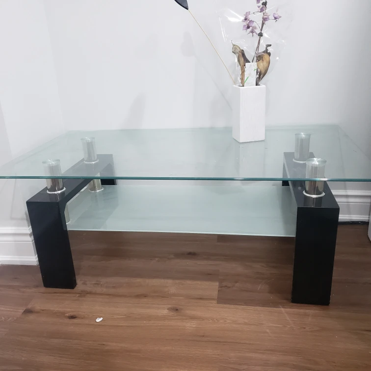 Glass Coffee Table with Chrome Base