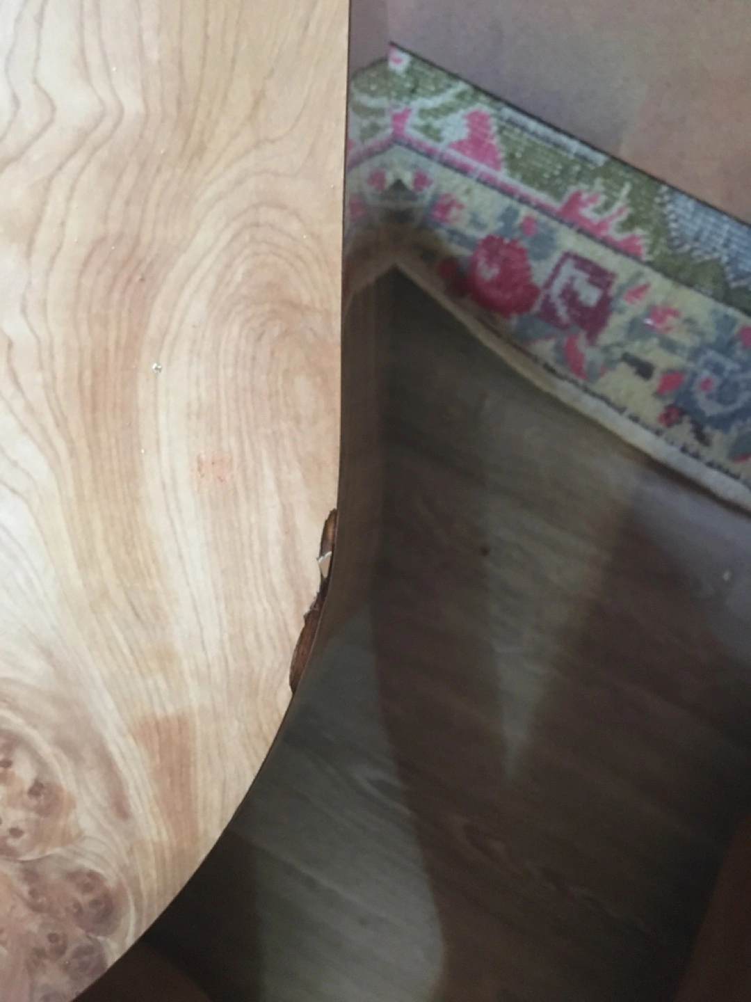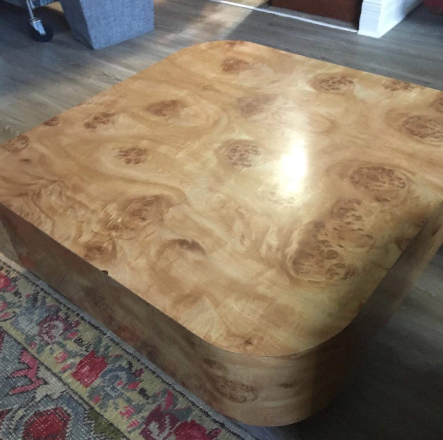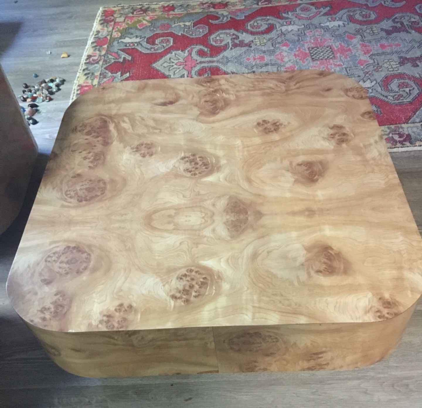 Absolutely one of a kind faux wood Formica set. Round edges makes it family friendly. One coffee table and two end tables. Sad to see this unique set go but downsizing.