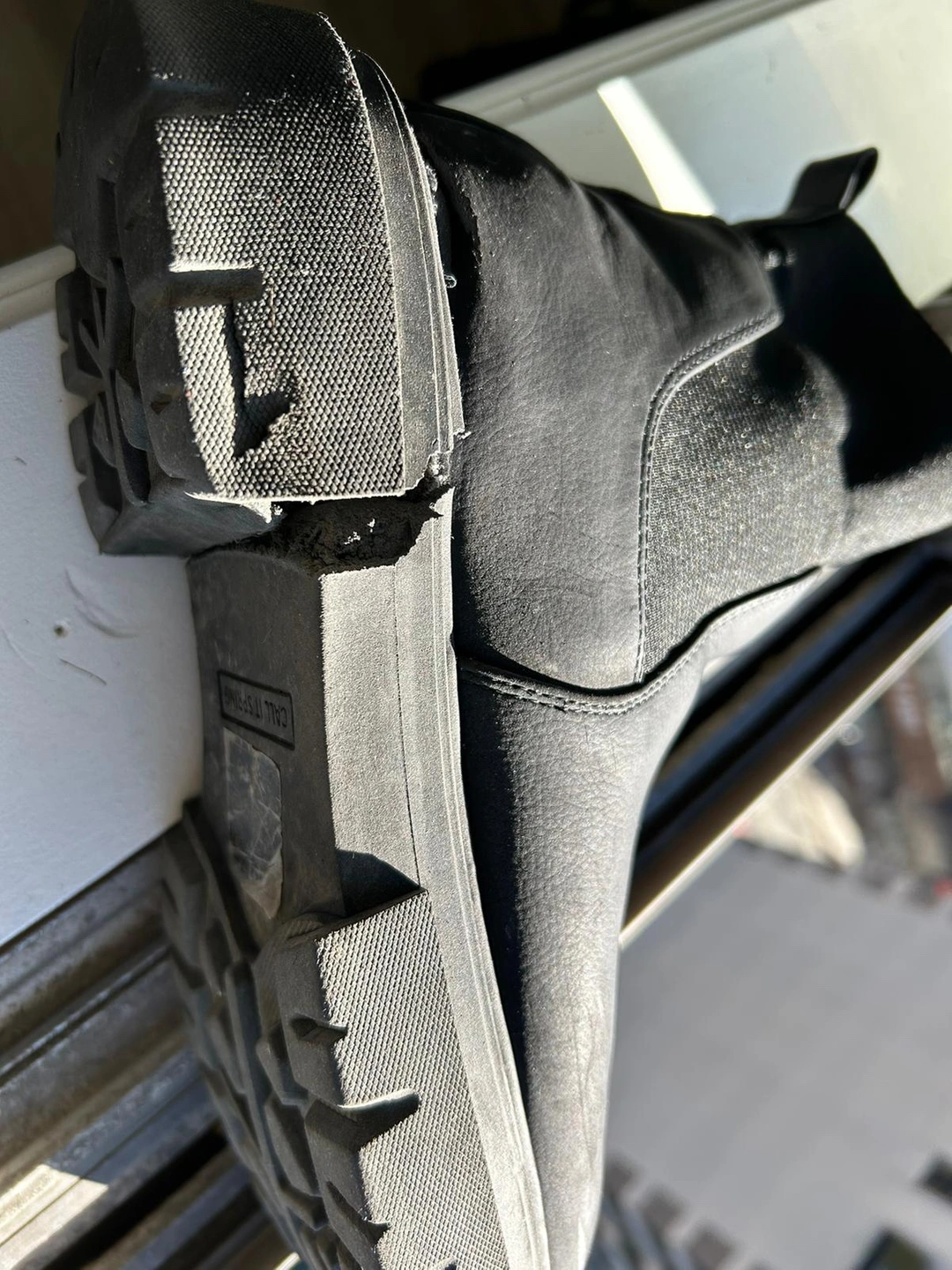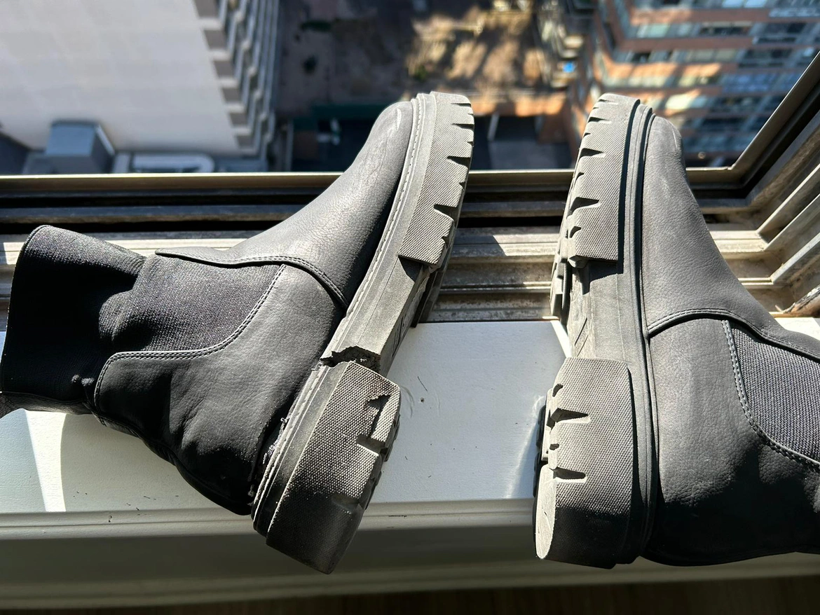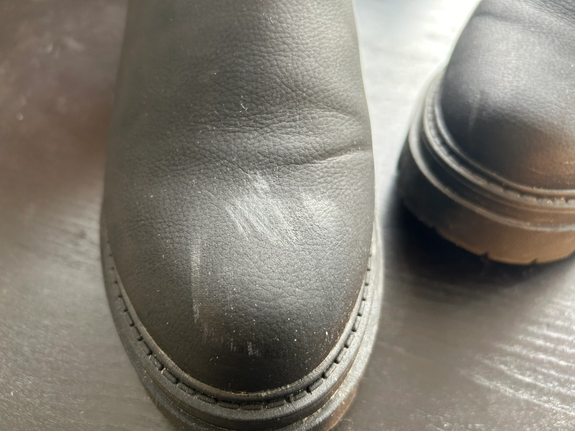 The vegan leather that feature a round toe and lug sole for a style you'll want to wear every day. Comfy and stylist at the same time. Bought few months back, got other boots and I don't wear it anymore. Box and Receipt is also available. Please check the pictures, it needs a little mending and it's good to go.
