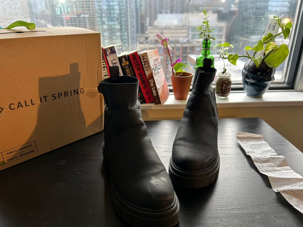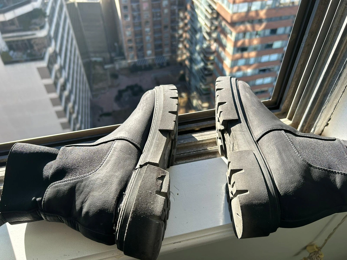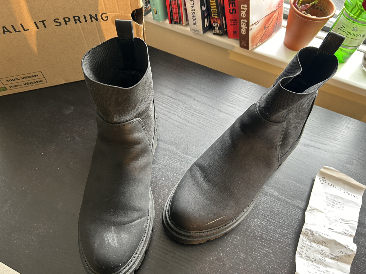 The vegan leather that feature a round toe and lug sole for a style you'll want to wear every day. Comfy and stylist at the same time. Bought few months back, got other boots and I don't wear it anymore. Box and Receipt is also available. Please check the pictures, it needs a little mending and it's good to go.