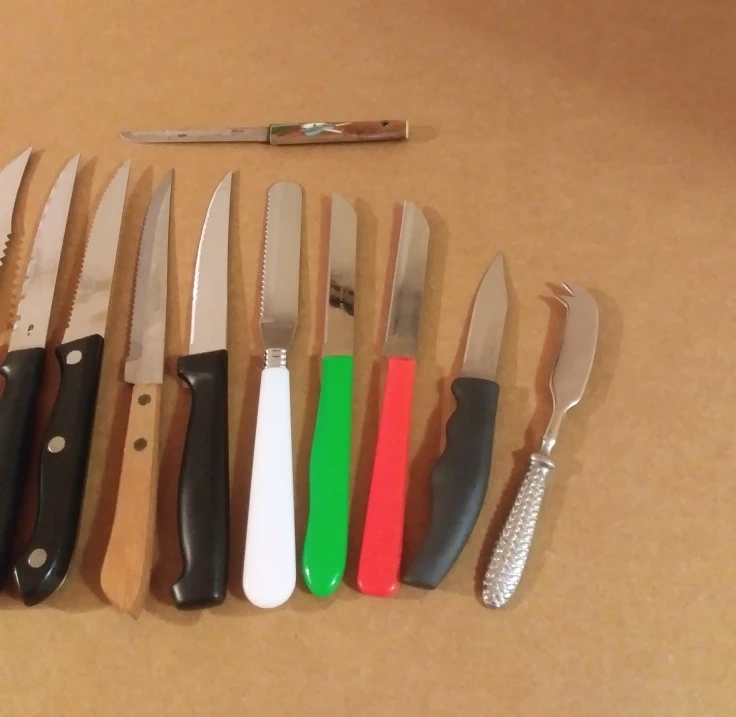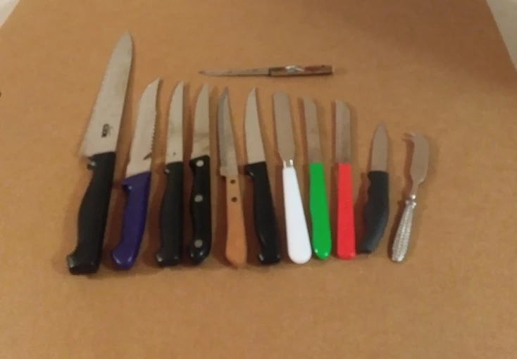 An assortment of 12 good quality kitchen knives, in different sizes, for just $25, or buy them separately for $2 - $5 each.