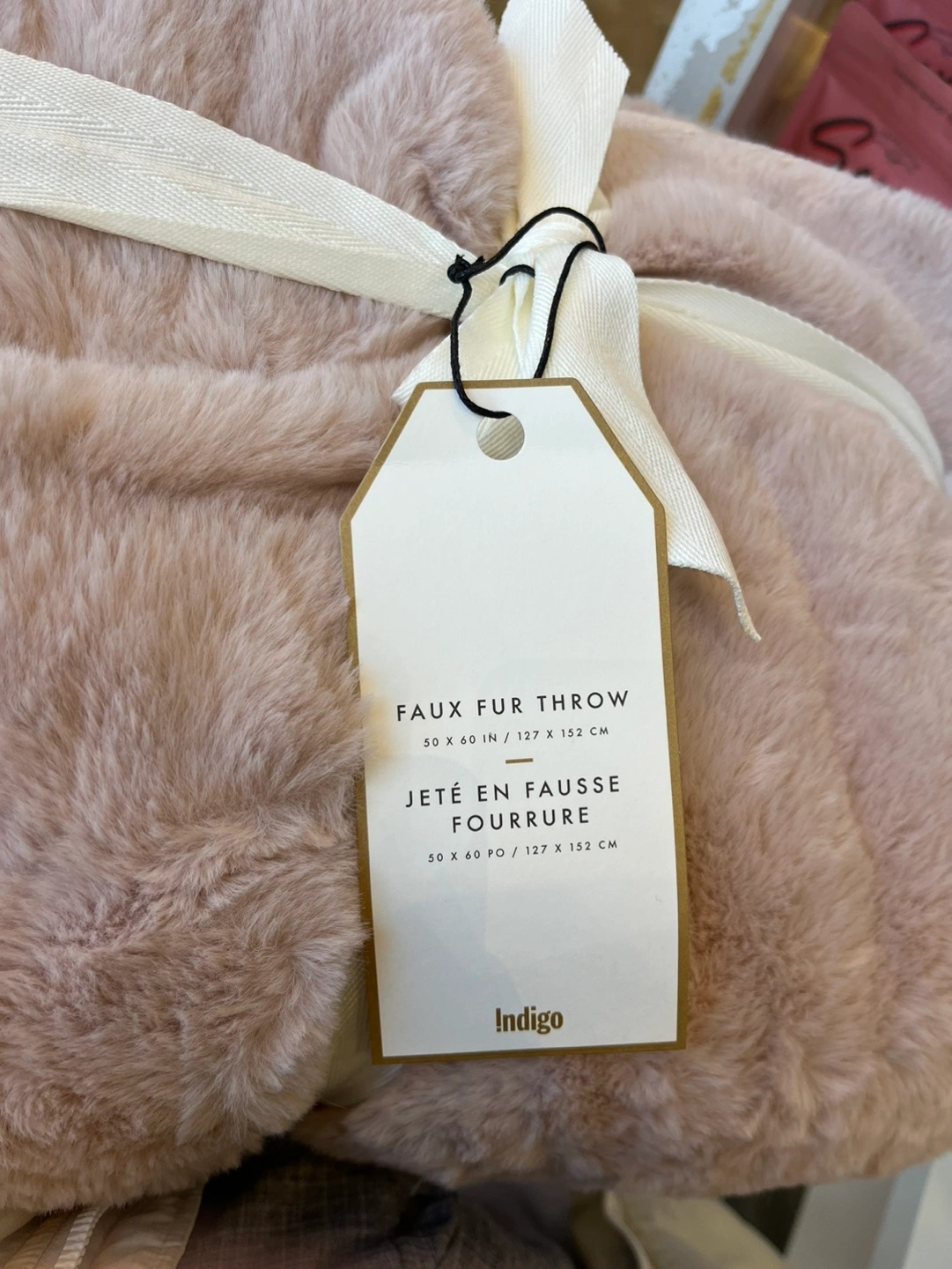 Brand new dusty pink faux fur throw from Indigo. Super soft and cozy :) Got it for Christmas but I have way too many throws as it is so selling it!