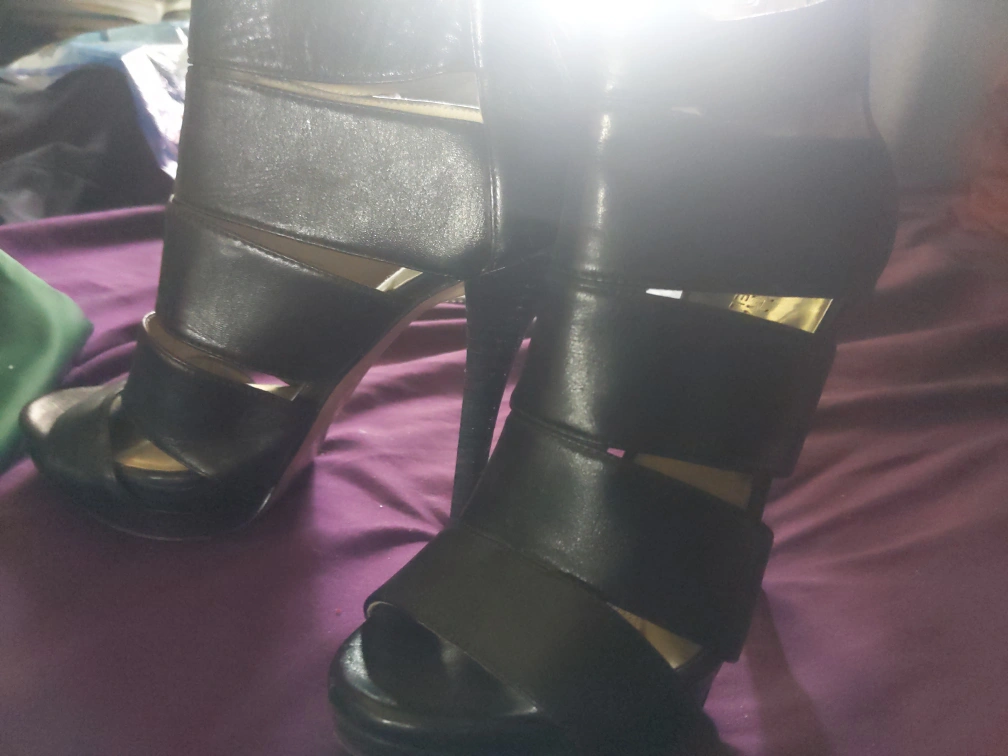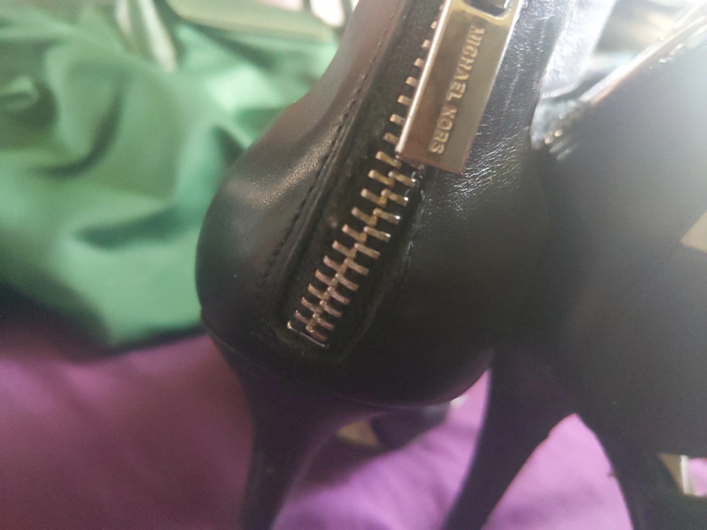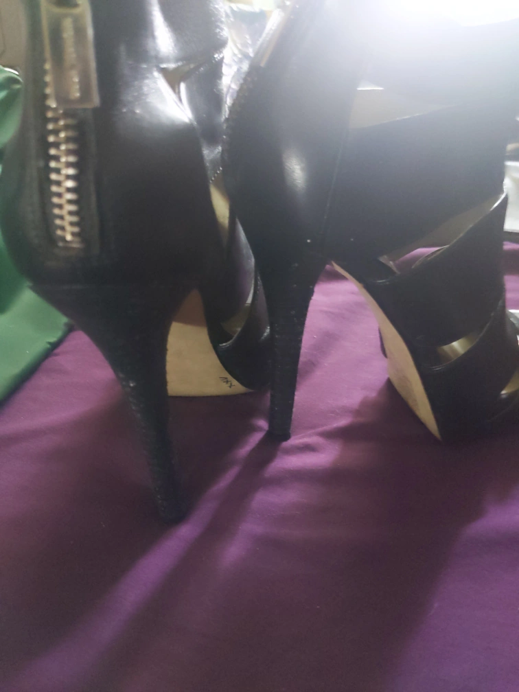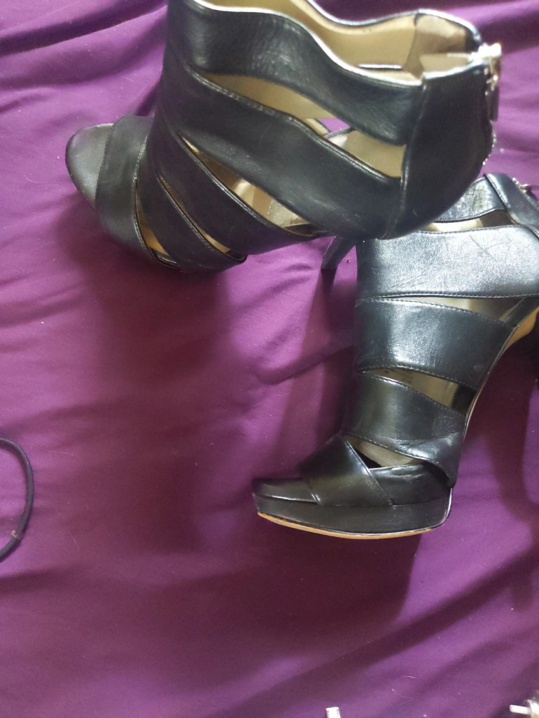 gorgeous open toe black Michael Kors High Heels (very high!). Zip up in the back for added comfort, makes it easier to walk in, practically brand new. they're just not quite my size unfortunately (Size 6).