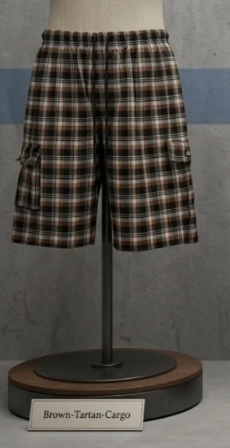 This is a Roober square-patterned shorts, black, white, and brown. Velcro pockets on each side, one back pocket on the right side. 100% cotton.