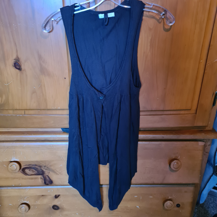 Sleeveless brown cardigan. For summer as it is thin. Great with a tank top and jeans like cowgirl outfit.