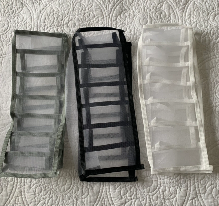 Handy to organize small clothing items in drawers. Purchased a few sets, this set is extra.