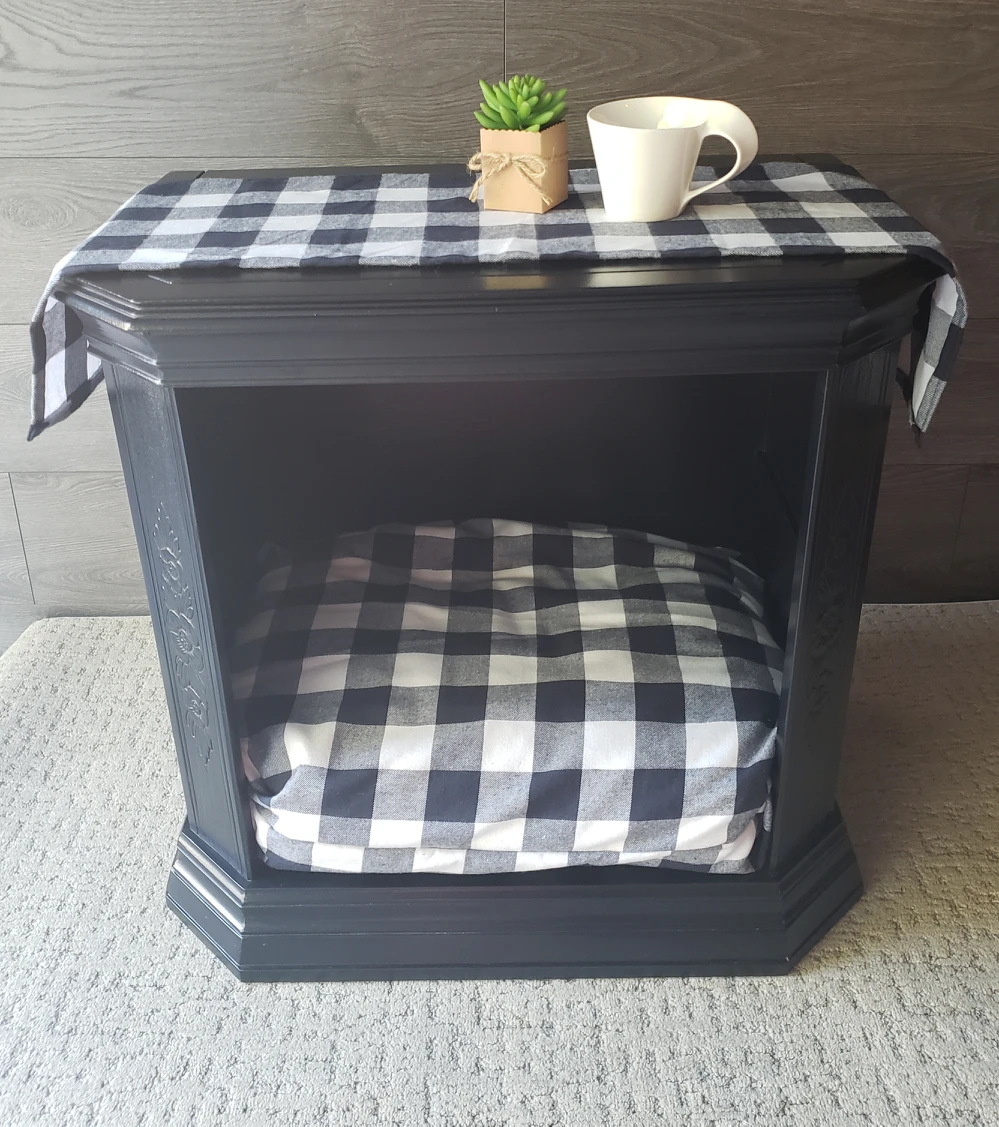 Beautiful dog or cat pet beds that can be used as bedroom nightstands or livingroom sidetables.