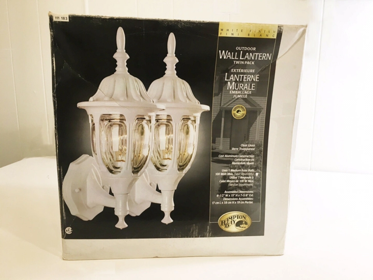 $30 WHITE Outdoor Wall Lantern Twin Pack Lighting Fixtures Hampton Bay New In Box
