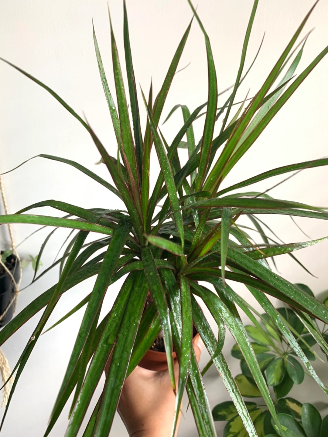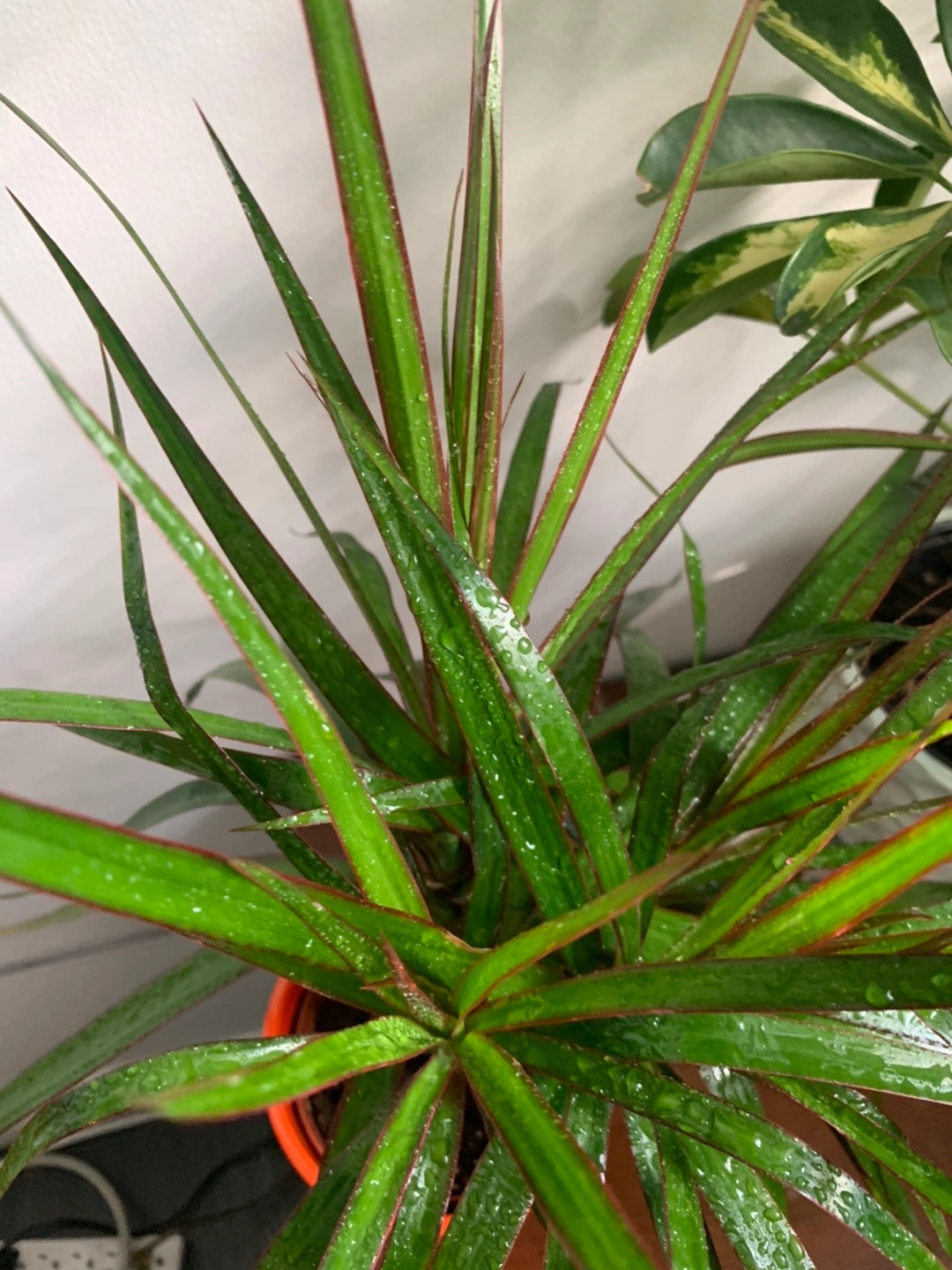Liven up any living space (home, office or business) with this exquisite plant with green sword-like, red-edged leaves. Has 4 branches already and growing :)